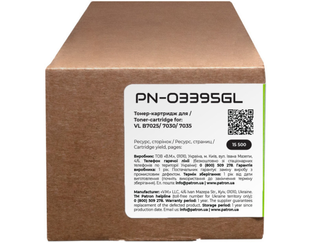 | Тонер-картридж сумісний XER 106R03395 Green Label Patron (PN-03395GL) оптимальне рішення для лазерних принтерів та БФП. Основні властивості Детальна інформація: Що таке сумісний картридж? Кожен користувач друкувальної техніки стикається з питанням купівлі нового картриджа і знаходить досить велику кількість пропозицій. Як зробити правильний вибір? Розглянемо основні варіанти: Виробники друкувальних пристроїв (т.з. OEM виробники) наполягають на використанні оригінальних картриджів. Їх основний недолік - висока вартість. Сумісні картриджі виробляються різними компаніями - сторонніми виробниками. Вони дають можливість істотно заощадити на друці, проте питання оптимального балансу між якістю друку, ціною, гарантією та ресурсом картриджа залишається вибором Покупця. Тонер-картридж сумісний XER 106R03395 Green Label Patron (PN-03395GL) гарантія Ми гарантуємо 12 місяців справної роботи картриджа та проведемо заміну продукції з виробничим дефектом. Якість друку Картриджі серії Patron Green Label виготовляються з використанням нових корпусів та повністю придатні для повторної заправки. Основна відміна серії Patron Green Label від картриджів низького цінового сегменту – якість комплектуючих, що забезпечує високу оптичну щільність друку, а також ресурс, аналогічний оригінальному картриджу. При виробництві картриджів Patron Green Label виробник дотримується загального стандарту ISO 9001:2015 і спеціальні стандарти, що використовуються в індустрії друку - ISO 19752:2017 для монохромних картриджів ISO 19798:2017 - для кольорових картриджів, а також STMC стандарт для контролю ресурсу. Захист навколишнього середовища Виробництво картриджів Patron Green Label відбувається з виконанням вимог міжнародного стандарту по захисту навколишнього середовища - ISO 14001:2015. Залишки матеріалів і комплектуючих, що використовуються для виробництва картриджів Patron Green Label, передаються на утилізацію відповідно Закону України "Про відходи". Для виробництва картонної упаковки ми використовуємо перероблені матеріали з нанесенням мінімальної кількості фарби. А конструкція коробки для картриджа дозволяє кілька разів відкривати і закривати його на "замок" для транспортування в сервісний центр. Ми закликаємо до нанесення мінімального впливу на довкілля. Тому заправляйте і відновлюйте картриджі Patron Green Label. Тонер-картридж сумісний XER 106R03395 Green Label Patron (PN-03395GL) економія на офісному друці Вартість картриджів серії Patron Green Label в середньому на 70-80% нижче оригінальних витратних матеріалів. Оптимальне співвідношення ціна-якість робить дану продукцію хорошим вибором для Клієнтів, що бажають заощадити на друці і не прогадати з якістю. Зовнішній вигляд Ми потурбувалися про те, щоб упаковка картриджа була не лише екологічною, функціональною, мала мінімально можливі фізичні розміри, але і містила усю необхідну інформацію. На зеленій етикетці знаходиться інформація про картридж, його сумісність з друкувальними пристроями, номер партії, дата виготовлення, контакти виробника, а також номер телефону безкоштовної гарячої лінії для українських споживачів. Сподіваємось, що наведена інформація дозволить Вам зробити правильний вибір. Ваш друк – наша турбота! Оптимальний варіант для користувача, що хоче заощадити;При виробництві картриджа використовується новий корпус;Гарантований ресурс;Економія 70-80% у порівнянні з оригінальними витратними матеріалам