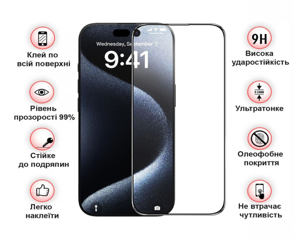 Призначення - для телефону, Вид покриття - глянсове, Сумісність з моделями - Apple iPhone 16 Plus, Кількість в упаковці - 1 шт