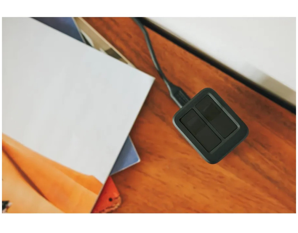 Забезпечте максимальну готовність до нових відеозйомок із зарядним пристроєм, який одночасно відновлює енергію у двох акумуляторах. Світлодіодні індикатори інформують про рівень заряду кожного з них, навіть коли пристрій не під’єднано до електромережі, що зручно для подорожей. Порт USB-C дозволяє заряджати від будь-якого доступного джерела живлення в оптимізованому режимі, а конструкція з глибокими слотами надійно утримує акумулятори на місці під час транспортування. Завдяки такому підходу ви завжди будете готові до нових зйомок без тривалих очікувань, адже окрім зарядного пристрою комплект містить два акумулятори. Два акумулятори Enduro: знімайте без обмеженьЗнімати у форматі 5,3K з частотою 60 кадрів за секунду та насолоджуватися плавністю завдяки HyperSmooth стало ще простіше з двома акумуляторами Enduro на 1900 мА*год. Ви отримуєте півтори години запису в 5,3K, не замислюючись про зарядку. Навіть при -10°C батареї демонструють надійність і стабільність - ідеальний вибір для зимових експедицій, активних зйомок на природі та будь-яких моментів, коли процес повинен тривати довше. Швидке, надійне та безпечне заряджанняЗавдяки оптимізованій системі заряджання акумулятори набирають повну потужність за мінімальний час, щоб якомога швидше повернутися до зйомок. Але пристрої залишаються в безпеці: ризик перегрівання або перенапруги зведено до нуля. Глибоко посаджені роз’єми забезпечують додатковий захист під час перевезень, що особливо цінно під час змін локацій. Під'єднайте зарядний пристрій до сучасного блоку живлення з портом USB-C або до портативної батареї, щоб мати доступ до енергії в будь-якому місці. Миттєвий контроль рівня зарядуЗавдяки подвійному світлодіодному індикатору на зарядному пристрої ви завжди знаєте рівень заряду акумуляторів. Під час зборів на тривалу поїздку або зйомку вранці перевірка індикаторів дозволяє швидко оцінити готовність батарей та уникнути непередбачених затримок. У будь-яких умовах, навіть на виїзді, ви можете впевнено переконатися, що ваше обладнання повністю заряджене та готове до роботи, навіть коли зарядний пристрій не підключений до джерела живлення. |