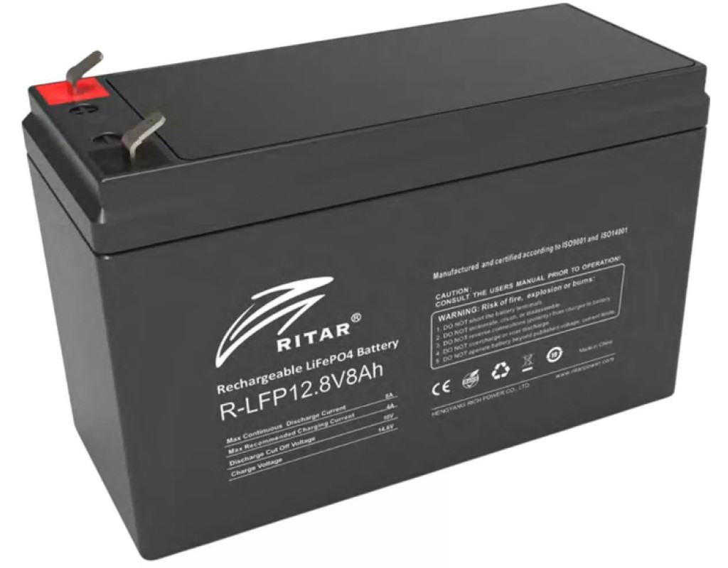 Акумуляторна батарея Ritar LiFePO4 12,8V 8Ah – це надійний і потужний пристрій, який ідеально підходить для використання в різних електричних пристроях. Цей акумулятор має високу ємність 8Ah, що забезпечує тривалу роботу пристроїв без необхідності постійної підзарядки. Завдяки технології LiFePO4 акумулятори Ritar мають високий ступінь безпеки у використанні і мають тривалий термін служби. Ця модель має номінальну напругу 12,8V, що забезпечує стабільну роботу пристроїв протягом тривалого часу. Характеристики акумуляторної батареї Ritar LiFePO4 12,8V 8Ah:
