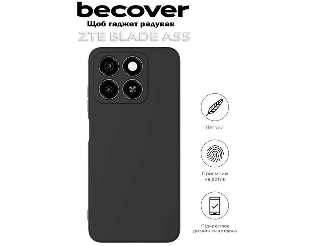 сумісність з моделями - ZTE Blade A55, Тип чохла для телефону - накладка, Призначення - модельний, Колір - чорний
