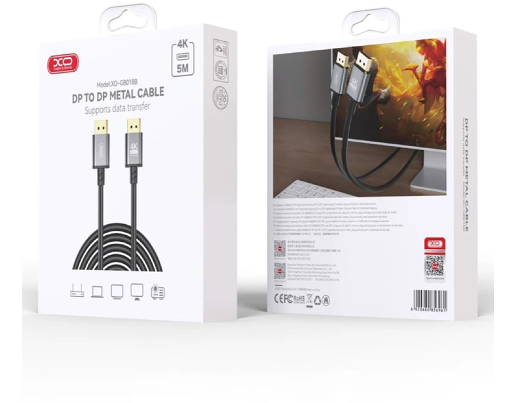 ХО GB018B-DP - преміальний DisplayPort кабель із позолоченими конекторами. Дивись фільми та серіали, слухай музику або грай у відеоігри в роздільній здатності 4K UltraHD 60Гц без перешкод та втрати якості. • UltraHD-4K: Виводь зображення в роздільній здатності 4K 60 Гц і насолоджуйся ідеальною картинкою та звуком. • Якісний всередині: Кабель з 99% безкисневої міді, екранований спеціальною фольгою та позолочені роз'єми в корпусі з алюмінію. • Надійний зовні: Зносостійка ПВХ оболонка в нейлоновому обплетенні та протектори біля конекторів витримують більше 10 000 згинань. Технічні характеристики: • Роздільна здатність: 4K, 60 Гц • Версія DisplayPort: 1.2 • Кабель з безкисневої міді, екранований спеціальною фольгою • Позолочені роз'єми в корпусі з алюмінію • Зносостійка ПВХ оболонка в нейлоновому обплетенні та протектори біля конекторів витримують більше 10 000 згинань • Довжина кабелю: 5 м |