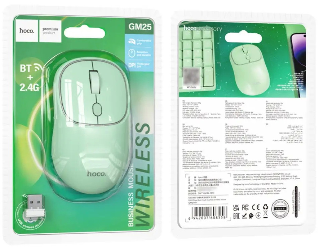 Миша бездротова HOCO GM25, 1600DPI, 2.4GHZ, Light Green, Blister