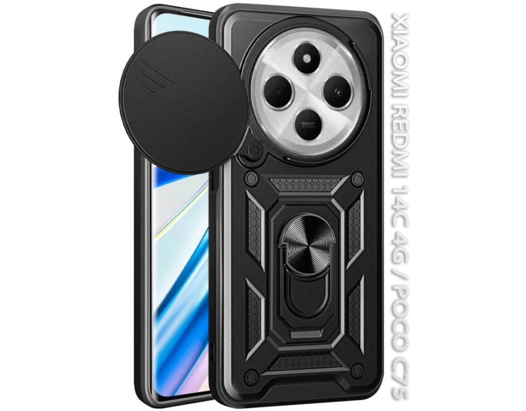 сумісність з моделями - Xiaomi Redmi 14C, Xiaomi Poco C75, Тип чохла для телефону - накладка, Призначення - модельний, Колір - чорний