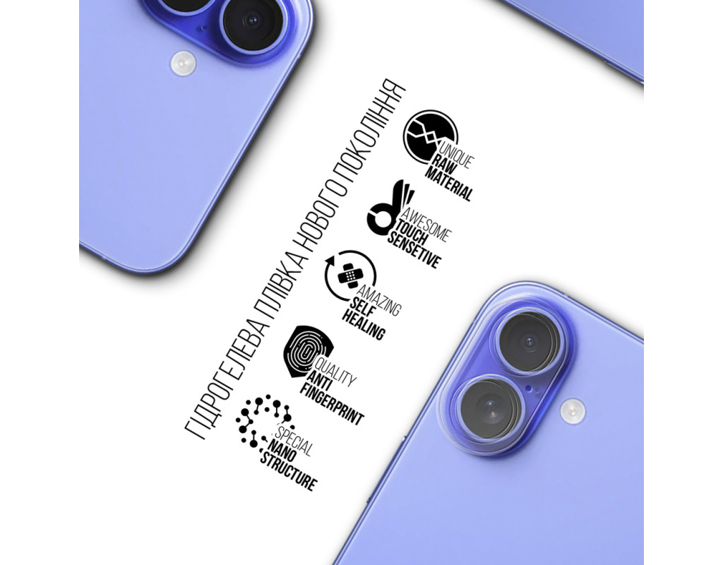 Призначення - для камери телефона, Вид покриття - матове, гідрогелева, Сумісність з моделями - Apple iPhone 16, Кількість в упаковці - 1 шт