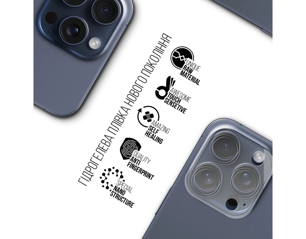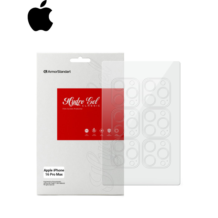 Призначення - для камери телефона, Вид покриття - глянсове, гідрогелева, Сумісність з моделями - Apple iPhone 16 Pro Max, Кількість в упаковці - 6 шт