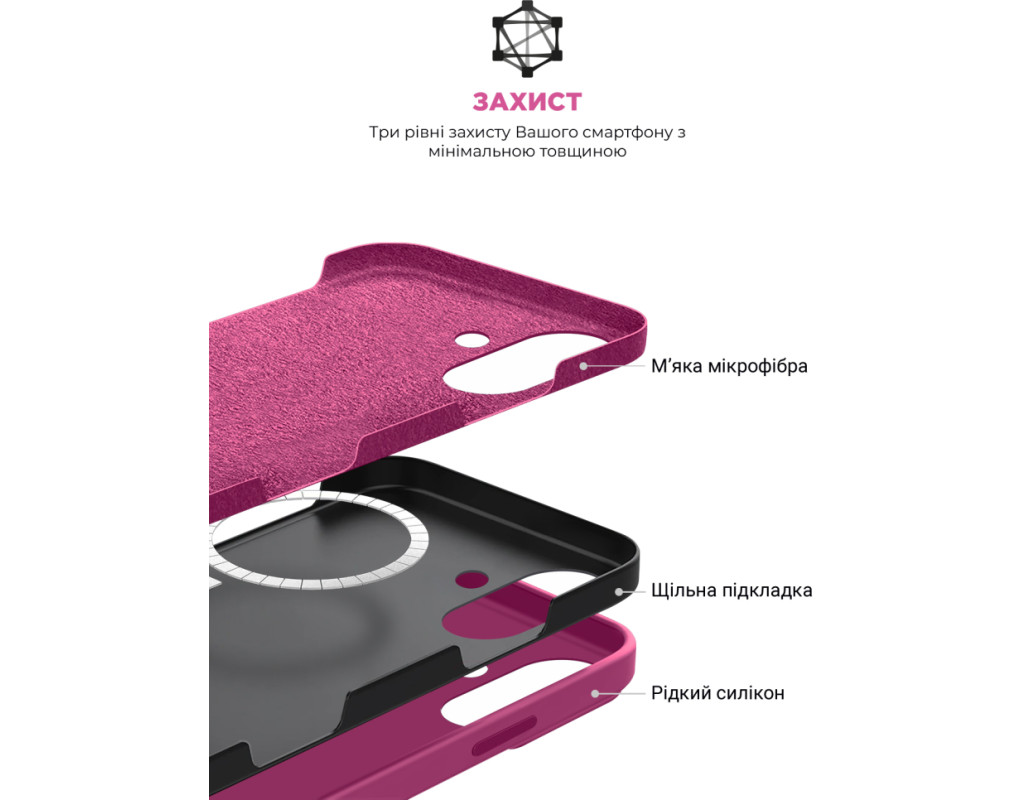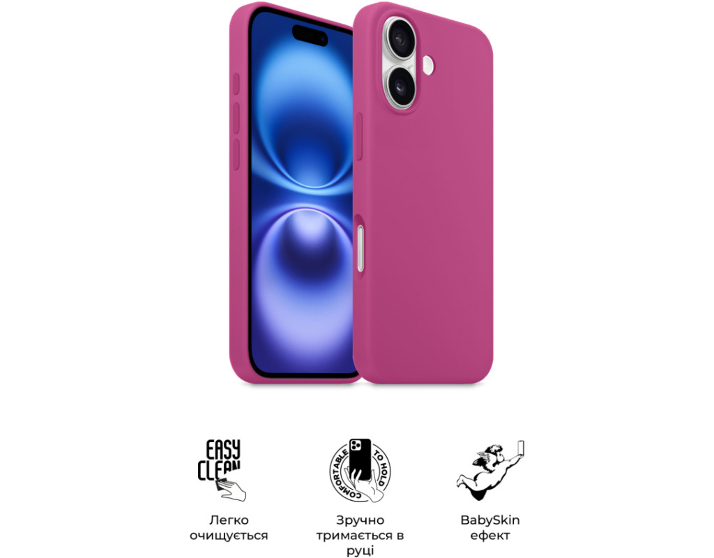 сумісність з моделями - Apple iPhone 16, Тип чохла для телефону - накладка, Призначення - модельний, Колір - фуксія