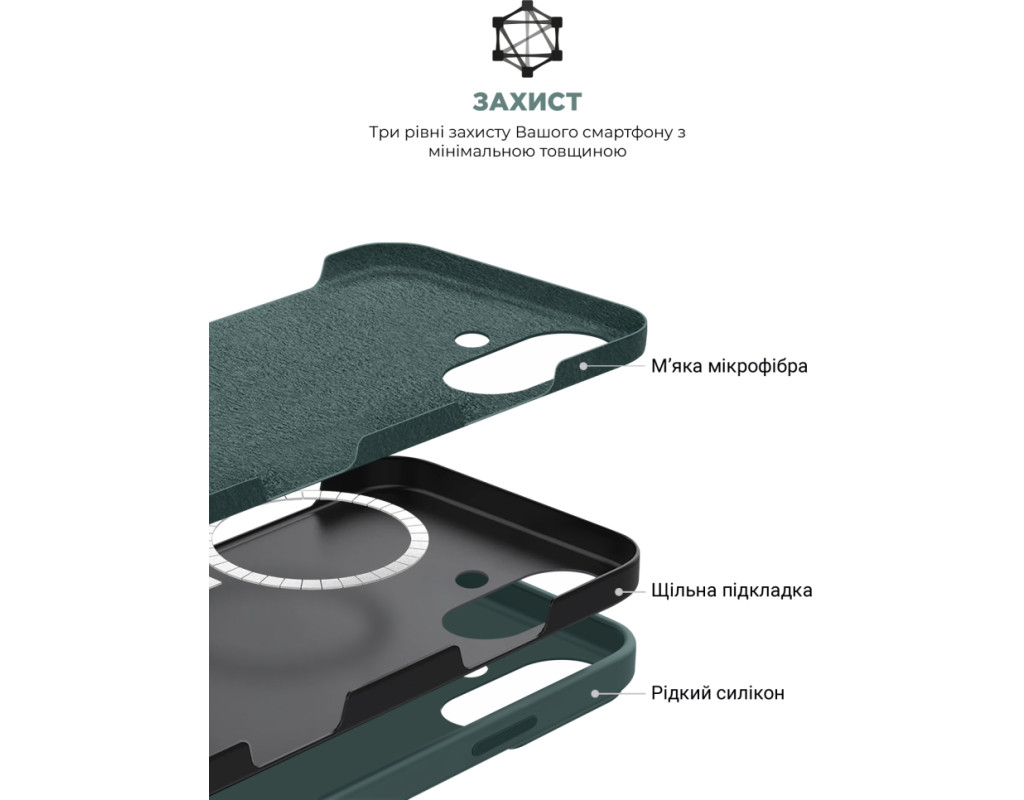 сумісність з моделями - Apple iPhone 16, Тип чохла для телефону - накладка, Призначення - модельний, Колір - темно-зелений