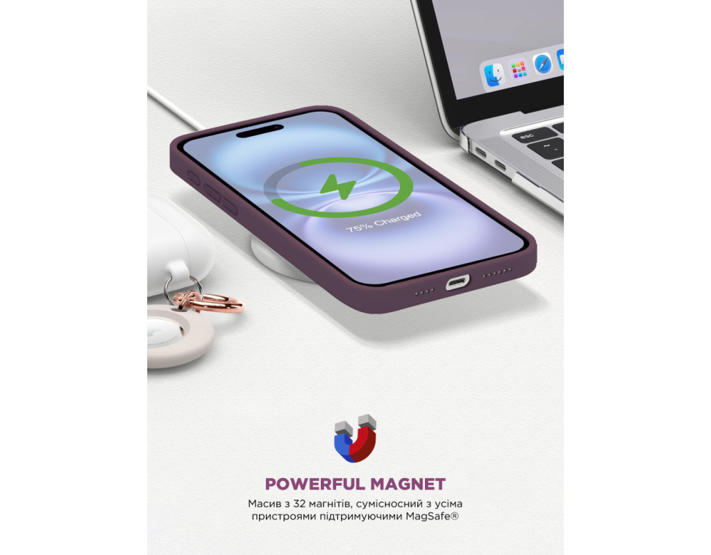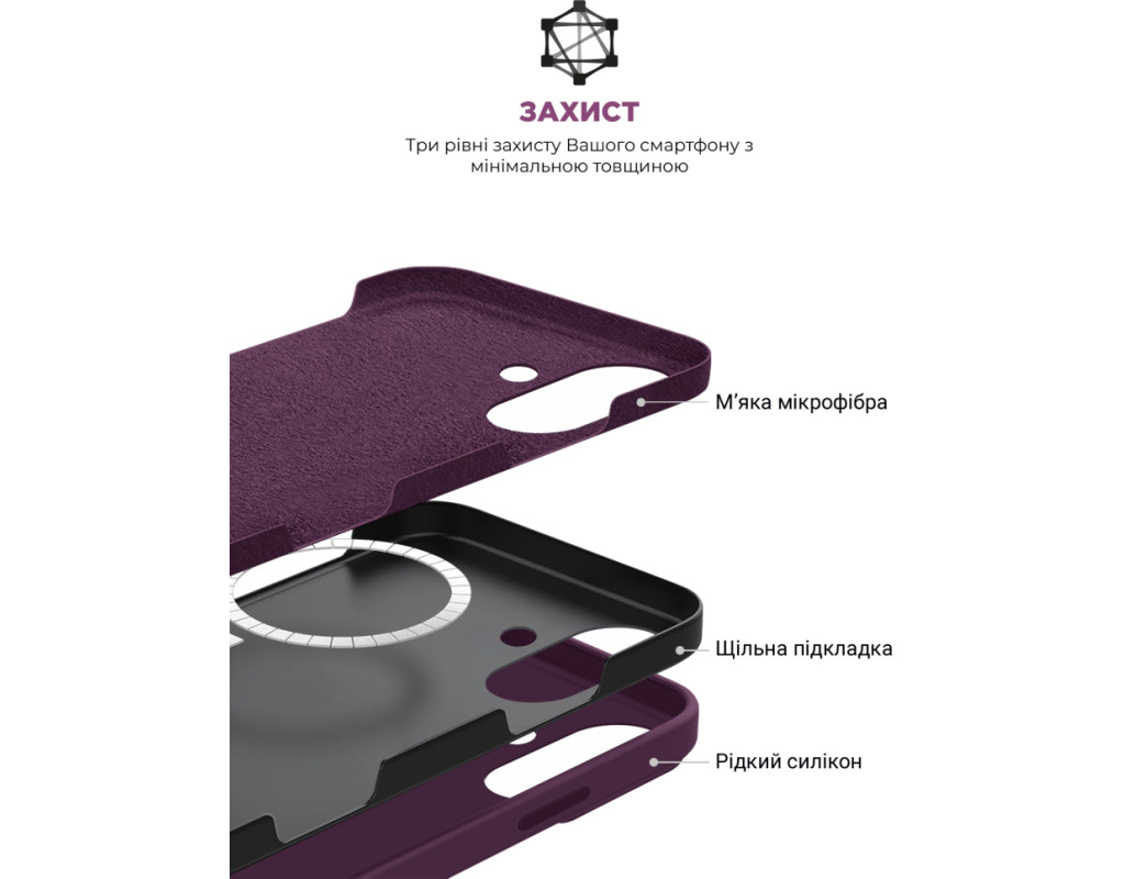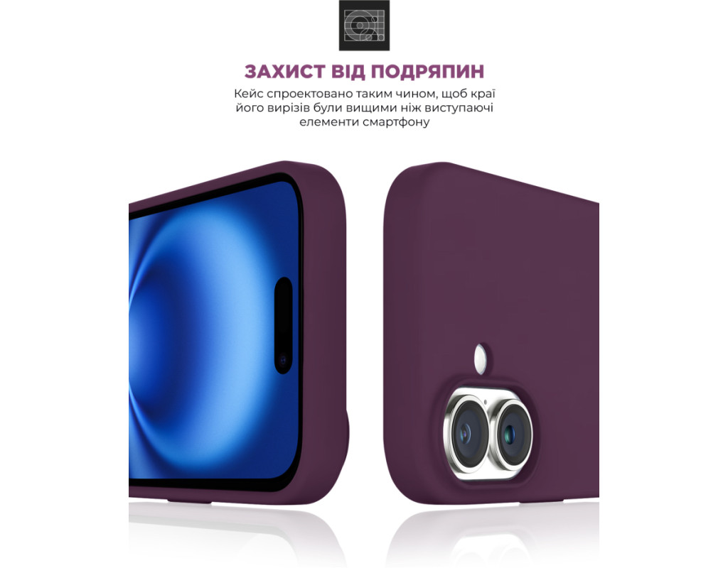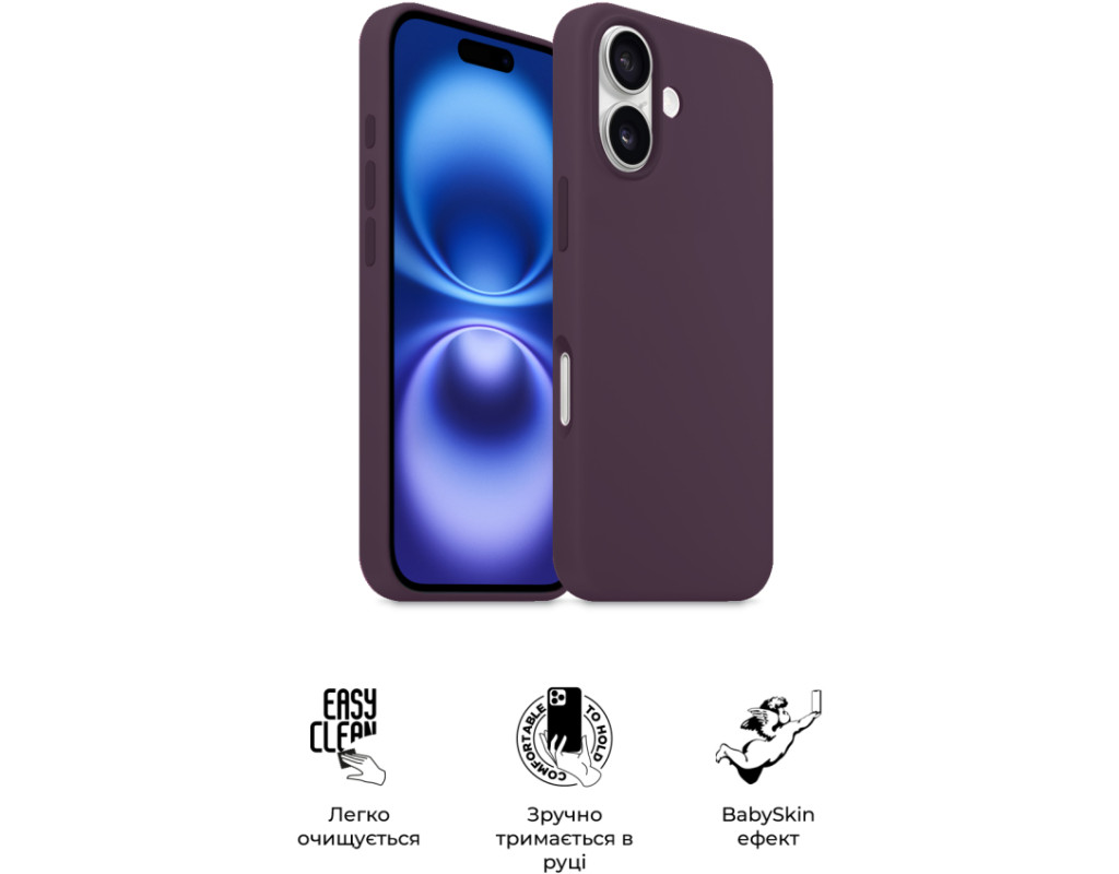 сумісність з моделями - Apple iPhone 16, Тип чохла для телефону - накладка, Призначення - модельний, Колір - сливовий
