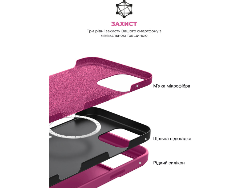 сумісність з моделями - Apple iPhone 16 Pro Max, Тип чохла для телефону - накладка, Призначення - модельний, Колір - фуксія