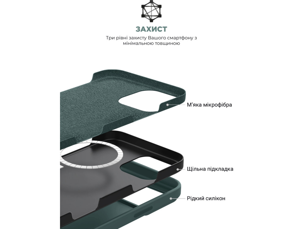 сумісність з моделями - Apple iPhone 16 Pro Max, Тип чохла для телефону - накладка, Призначення - модельний, Колір - темно-зелений