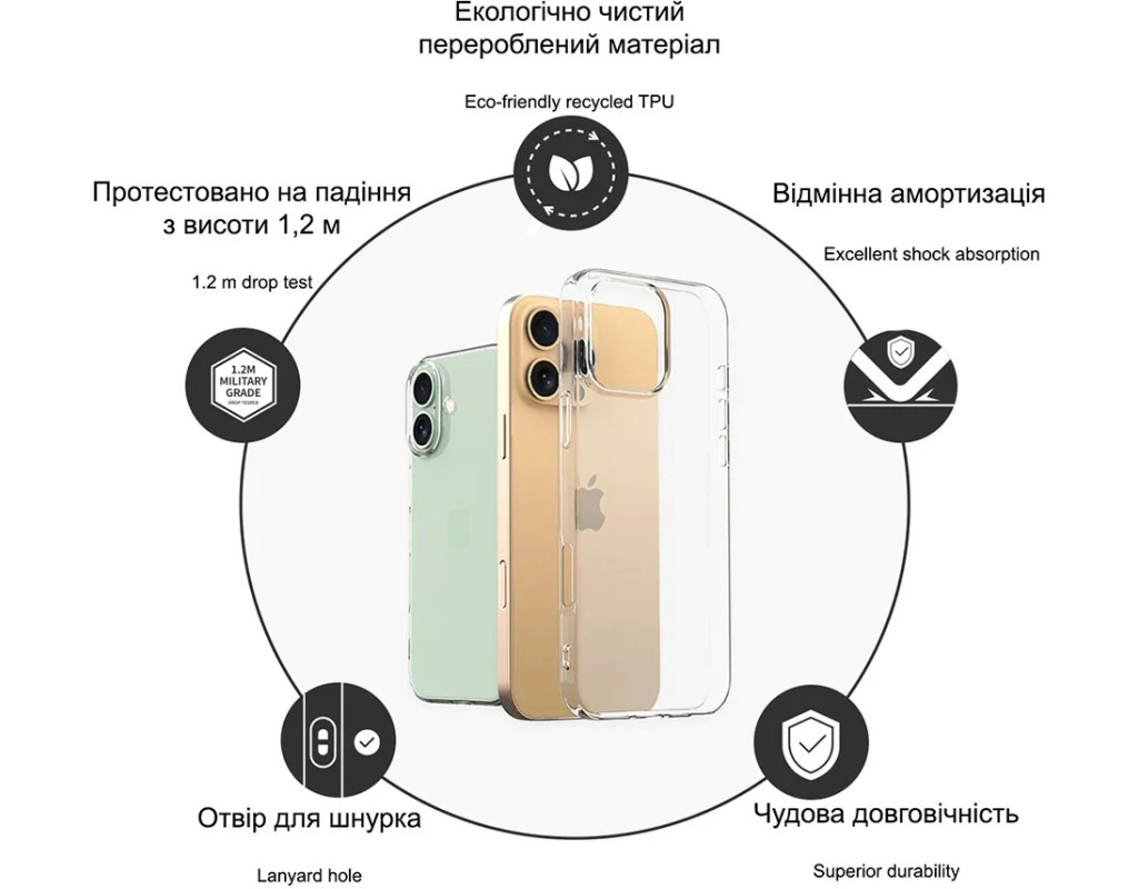 сумісність з моделями - Apple iPhone 14, Тип чохла для телефону - накладка, Призначення - модельний, Колір - прозорий