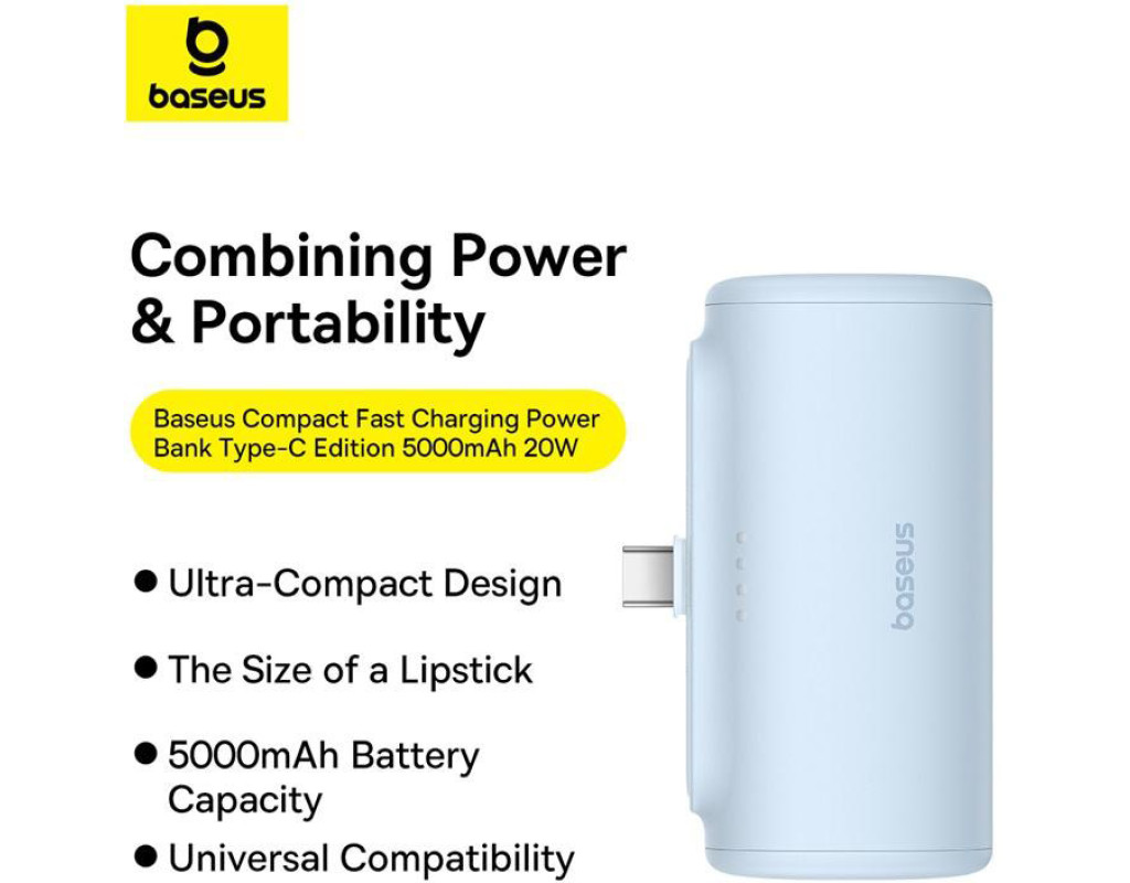 За розміром може зрівнятися з губною помадою. Шнур не потрібен, цей повербанк легко можна помістити в кишеню або сумочку, а коли ваш телефон вичерпує свій заряд акумулятора, у вас завжди під рукою буде зарядний пристрій. Вага 154 грами, легкий, майже нічого, навіть у найменшій сумці він знайде своє місце. Попри невеликі габарити він видає достатньо енергії для мобільного телефону.