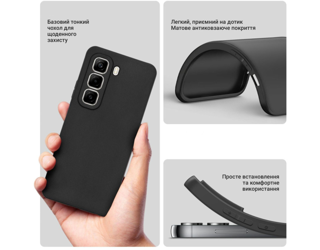 сумісність з моделями - Infinix Hot 50 Pro, Тип чохла для телефону - накладка, Призначення - модельний, Матеріал - силікон, Колір - чорний
