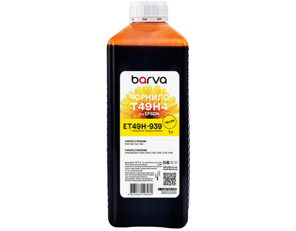 Чорнило Barva Epson T49H 1л, Water, Yellow (ET49H-939)