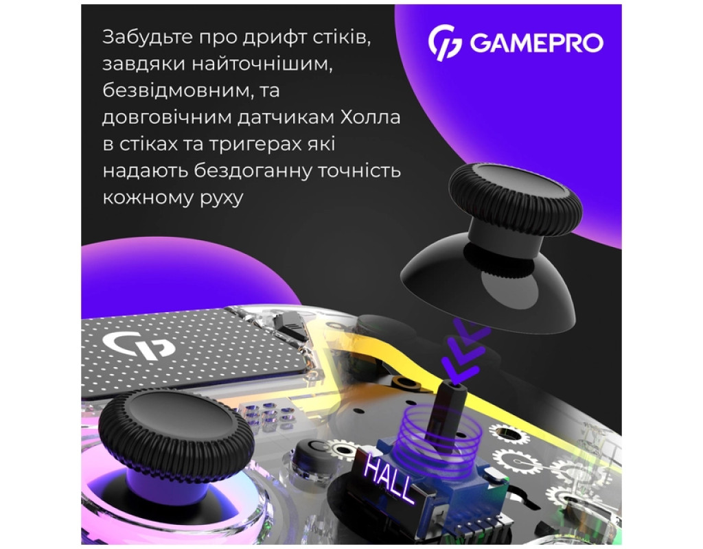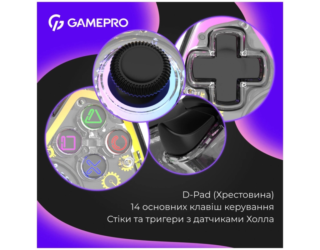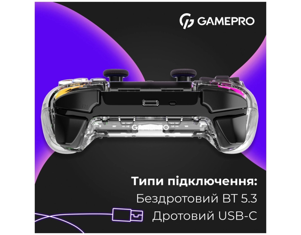 Геймпад GamePro GPS13T BT 5.3/USB/PC/iOS/Android/PS3/PS4 RGB Transparent (GPS13T)