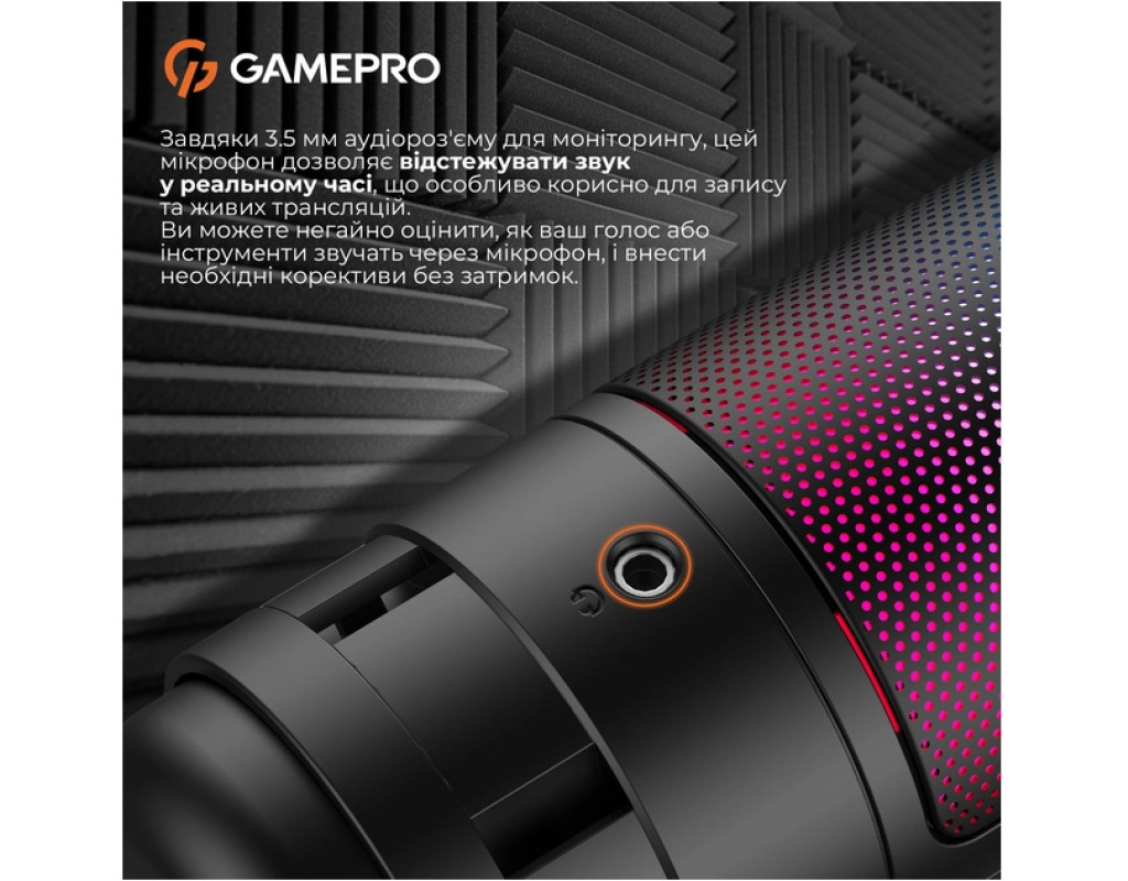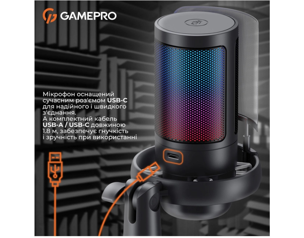 Мікрофон GamePro UGM105 — це не лише відмінний інструмент для стрімінгу, потокових трансляцій, вокалу, озвучування чи інтервʼю, але й елемент, який може підкреслити вашу індивідуальність завдяки своїй яскравій RGB-підсвітці. Цей конденсаторний мікрофон з кардіоїдною діаграмою напрямку забезпечує точне відтворення вашого голосу, одночасно добре пригнічуючи непотрібний шум. GamePro UGM105 також має знімний поп-фільтр, який ефективно зменшує звуки дихання та різкі звуки, забезпечуючи чистоту запису. Завдяки вбудованій функції шумозаглушення, мікрофон ефективно зменшує фоновий шум, що забезпечує чіткість звуку без потреби у додаткових програмах. Конденсаторний капсуль цього пристрою відмінно передає всі нюанси вашого голосу, роблячи його ідеальним вибором для ігрових сесій, відеоконференцій, стрімів та запису подкастів. Мікрофон забезпечує універсальність та зручність завдяки підключенню через USB Type-C до USB-A (кабель йде у комплекті). GamePro UGM105 стане надійним інструментом для будь-якого творця контенту, який прагне поєднати стиль, професіоналізм і якість звуку в одному пристрої. |
