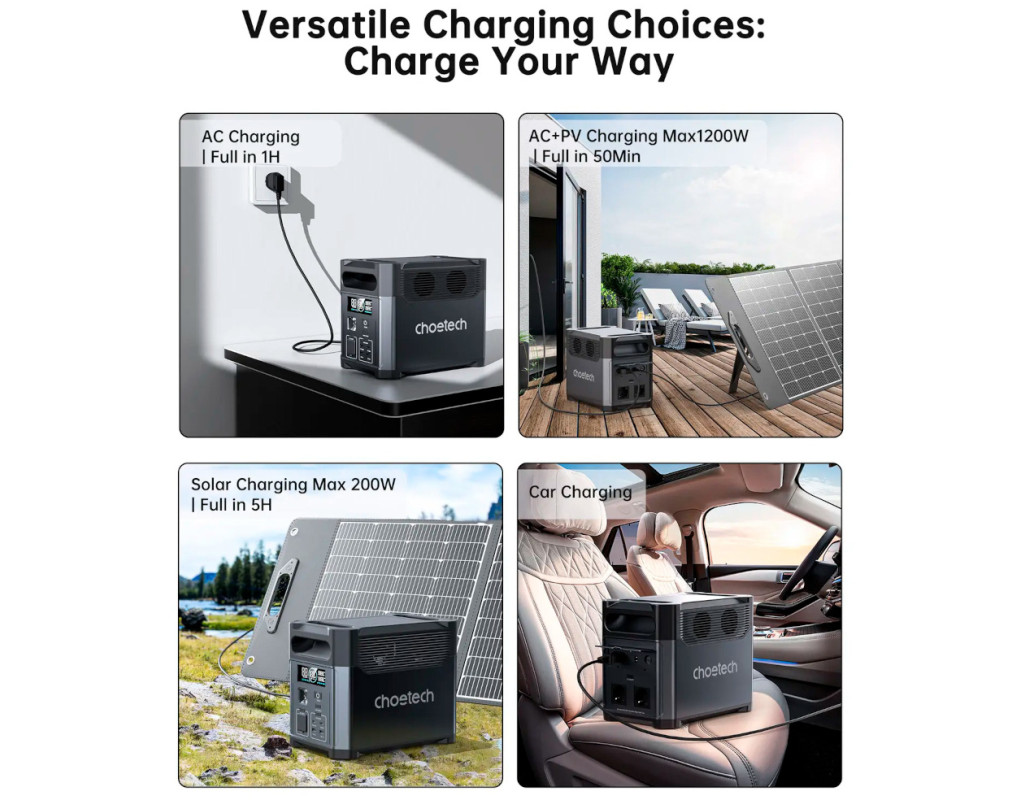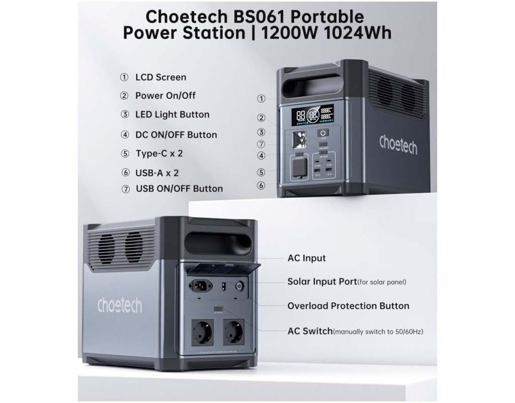 1 x XT60, 2 x USB Type A, 2 x USB Type C, 2 х розетка 220 В |