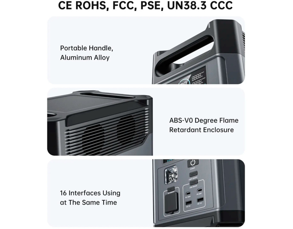 Power Delivery, QC швидка зарядка 3.0, З дисплеєм, З ліхтариком, З ручкою, функція ДБЖ, чиста синусоїда, Швидке заряджання батареї |