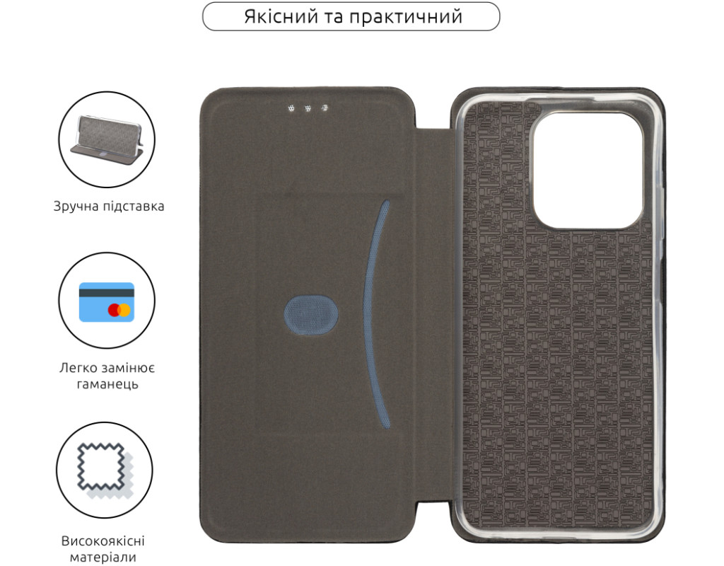 сумісність з моделями - Infinix Smart 9, Infinix Hot 50i, Тип чохла для телефону - книжка, Призначення - модельний, Колір - чорний