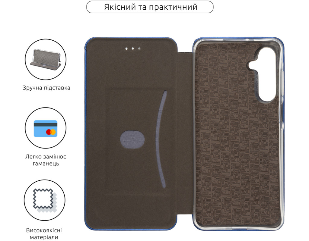 сумісність з моделями - Samsung Galaxy A16, Тип чохла для телефону - книжка, Призначення - модельний, Колір - синій