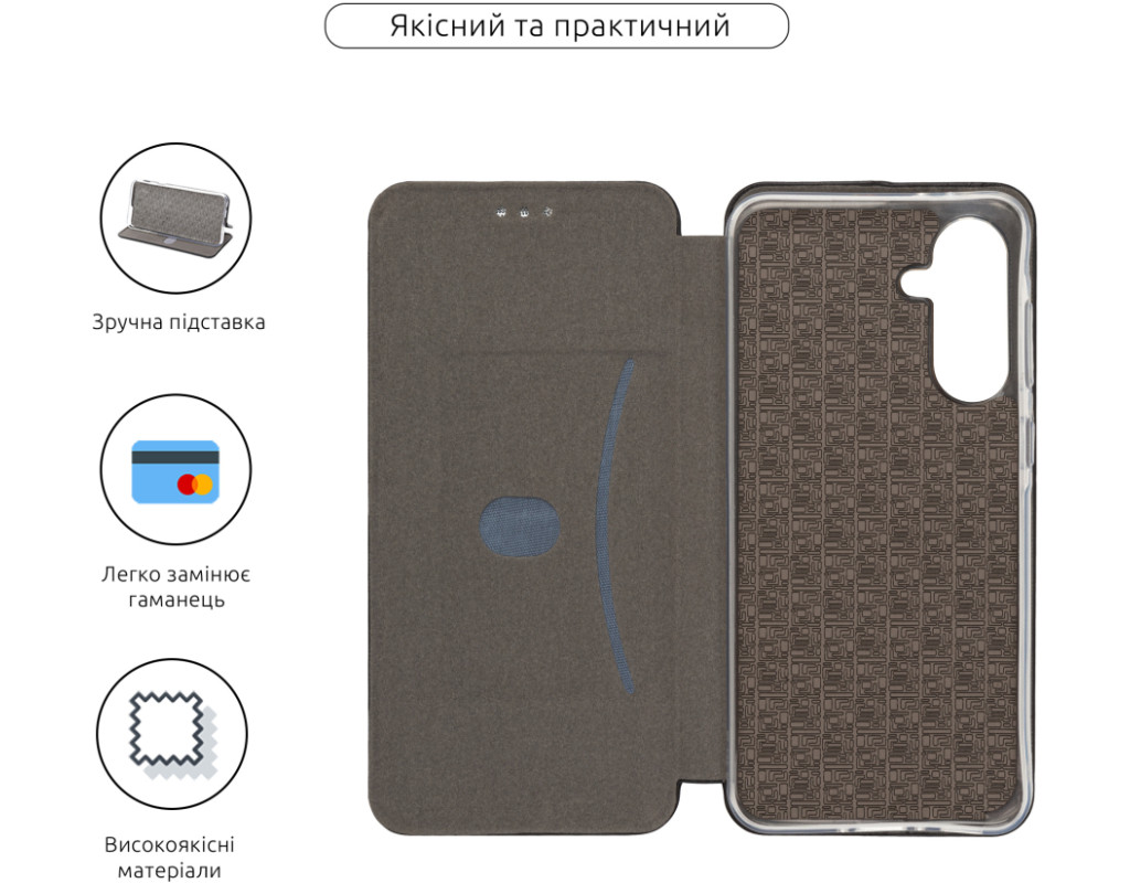 сумісність з моделями - Samsung Galaxy A36, Тип чохла для телефону - книжка, Призначення - модельний, Матеріал - поліуретан, Колір - чорний
