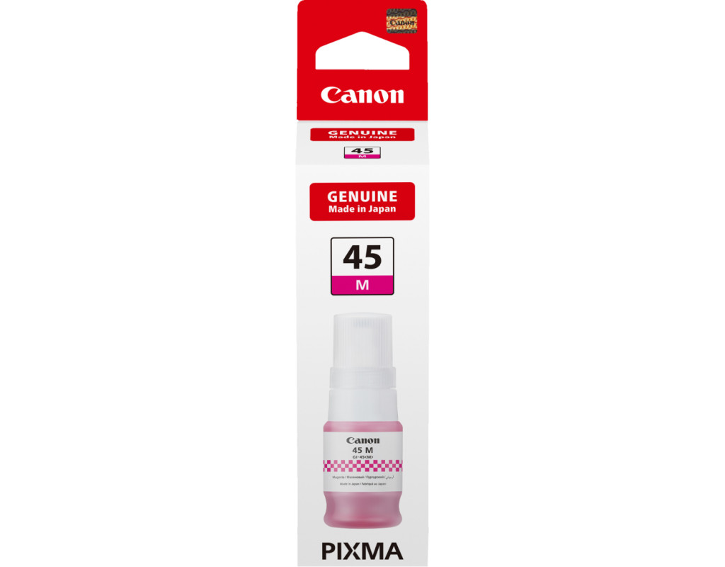 | Чорнильниця Canon GI-45M забезпечує чітке пігментне чорнило для друку ділових документів і фотографій удома та на роботі. |