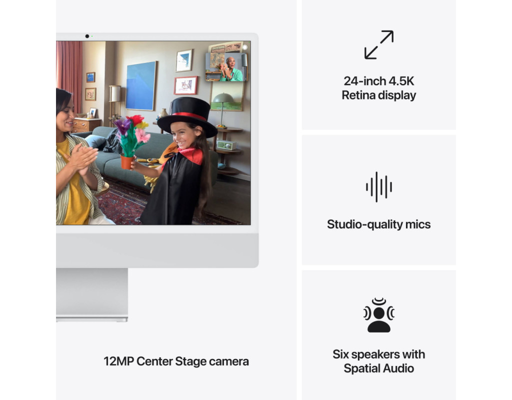 | Комп'ютер Apple 24" iMac Retina 4.5K: Створений для тих, хто цінує красу і продуктивність На перший погляд, Apple 24" iMac виглядає як витвір мистецтва, але під його тонкою оболонкою ховається справжня потужність. Завдяки товщині всього 11,5 мм і малій вазі до 4,5 кг, цей моноблок вражає не лише своєю компактністю, але й фантастичним дизайном, доступним у різних яскравих кольорах. Срібна версія моделі (MWUC3UA/A) ідеально вписується в будь-який інтер'єр, стаючи вишуканим елементом вашого робочого або навчального простору. Багатофункціональність iMac цілком відповідає запитам сучасного користувача. Цей комп'ютер створений для роботи та навчання, пропонуючи високу продуктивність завдяки новітньому процесору Apple M4 з 8 ядрами та 16 потоками. Це справжній лідер серед чіпів, що гармонійно поєднує в собі високу швидкодію та енергоефективність. Забудьте про затримки та гальмування - система запускається і прокидається майже миттєво, а всі програми працюють надзвичайно швидко. Оперативна пам'ять розміром 16 ГБ і 256 ГБ SSD забезпечують миттєвий доступ до файлів та безперебійну роботу під час виконання навіть найвимогливіших завдань. З підтримкою графіки Apple M4 з 8 ядрами, ви отримуєте значні можливості для редагування відео, фото та гри. Особливу увагу привертає дисплей Retina 4.5K з діагоналлю 23.5 дюйма та роздільною здатністю 4480 x 2520 пікселів. Якість зображення неперевершена: понад мільярд кольорів роблять кожну деталь яскравою та насиченою, а технологія True Tone налаштовує вигляд для максимально природного сприйняття. Ваші фото, відео та фільми оживають на ньому так, як ніколи раніше. За якість звуку відповідає вдосконалена аудіосистема з шести динаміків, здатних створити незабутнє аудіовідтворення, яке заповнює простір. Цей моноблок ідеально підходить для сімейних відеодзвінків, навчання на відстані або віддаленої роботи - HD-камера FaceTime 1080p разом з чіпом M4 гарантують, що ви завжди будете виглядати чудово. А завдяки трьом мікрофонам студійної якості, ваш голос буде передаватися чисто і чітко, без фонових шумів. Комп'ютер не тільки чудово виглядає, але й розумно інтегрується з іншими пристроями. В парі з iPhone, ваш iMac стає набагато кориснішим. Ви можете приймати дзвінки та повідомлення прямо на iMac, легко обмінюватися файлами через AirDrop і навіть копіювати та вставляти текст і зображення між пристроями за мить. Підключення зроблене на рівні завдяки наявності 2 портів Thunderbolt, що підтримують всі ваші улюблені пристрої та аксесуари. Бездротова миша та клавіатура додають зручності у використанні, дозволяючи працювати у своє задоволення без зайвих проводів. Зовнішній адаптер живлення потужністю 143 Вт забезпечує стабільну роботу, а підтримка Wi-Fi 6 і Bluetooth гарантують швидкі та надійні підключення до мережі та інших пристроїв. Підсумовуючи, 24" iMac - це не просто комп'ютер. Це мистецький виріб, що поєднує естетику з інноваціями, пропонуючи найкращий інструмент для творчості та роботи. Незалежно від того, чи займаєтесь ви проектуванням, редагуванням відео, навчанням або просто насолоджуєтесь медіа-контентом, цей iMac стане вашим надійним партнером у всіх справах. |