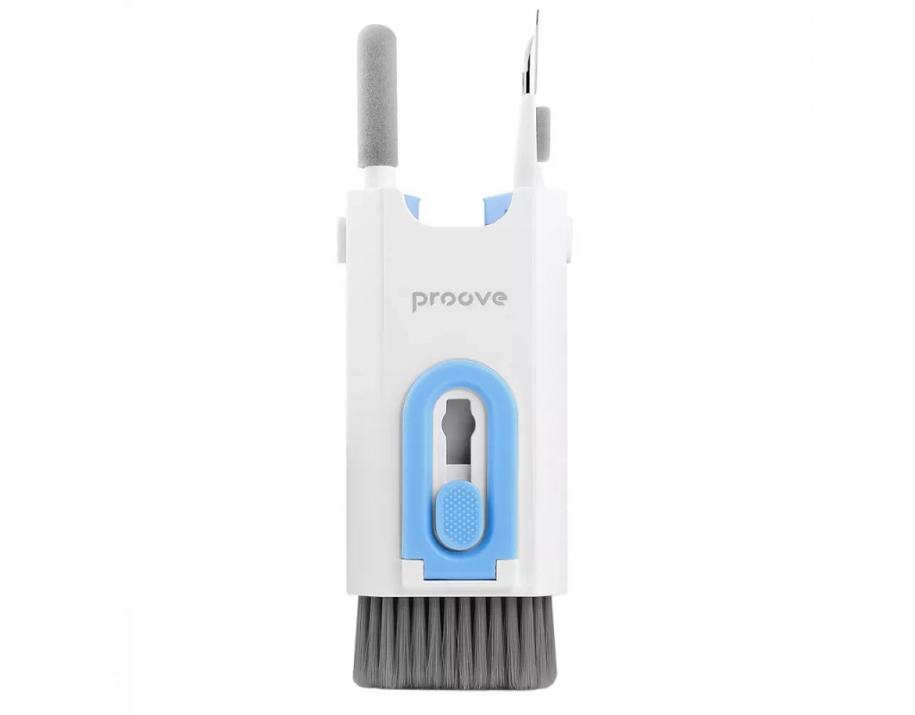 У комплекті: Ватна паличка х1, Наконечник х1, Додаткова щіточка х1, Підставка для телефона х1, Щітка, що висувається х1, Спрей х1, Мікрофібра х1, Вбудований знімач клавіш х1.
