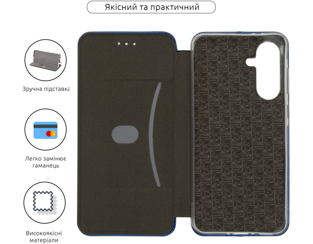 сумісність з моделями - Samsung Galaxy A56, Тип чохла для телефону - книжка, Призначення - модельний, Колір - синій