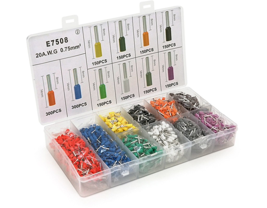 Набір клем / наконечників 1800шт VE7508 (R-300, B-300, Y-150, Bl-150, O-150, P-150, G-150, W-150, Gr-150, V-150) боксі