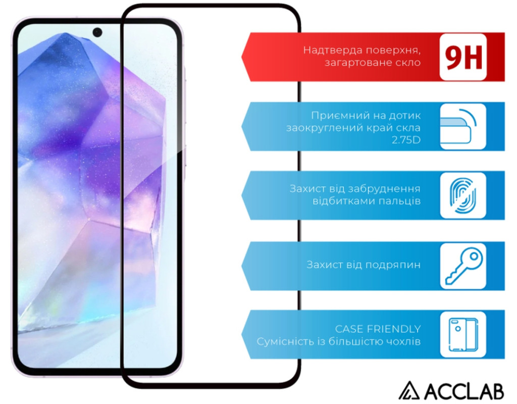 Скло захисне ACCLAB Full Glue Samsung A55 Black (1283126588839)