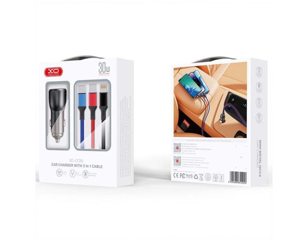 | Авто Зарядний пристрій XO CC55 QC3.0 18W 2USB/2.4A з кабелем USB – Lightning + MicroUSB + Type-C Чорне – Це зарядне автомобільне з двома USB-портами (2USB/2.4A) і в комплекті з універсальним кабелем 3в1 USB – Lightning + MicroUSB + Type-C – це інноваційний спосіб забезпечити швидку та ефективну зарядку ваших пристроїв під час поїздки. Його компактний дизайн та висока потужність робить його ідеальним аксесуаром для автомобільного використання. Особливості: Зарядне автомобільне CC55 QC3.0 18W забезпечує швидку та ефективну зарядку завдяки технології Quick Charge 3.0. З двома USB-портами, кожен із яких має потужність 2.4A, можна одночасно заряджати два пристрої. Комплектація кабелем 3в1: У комплекті надається універсальний кабель 3в1 USB – Lightning+MicroUSB+Type-C, що дозволяє заряджати різні типи пристроїв, включаючи Android та iPhone. Підтримка різних пристроїв: Зарядне обладнання підходить для Android та iPhone, забезпечуючи універсальність використання. Швидка зарядка QC3.0: Технологія Quick Charge 3.0 забезпечує ефективну зарядку пристрою, що важливо під час подорожей та в поспішних ситуаціях. Два USB-порти: Подвійні USB-порти з потужністю 2.4A дозволяють одночасно заряджати два пристрої, забезпечуючи максимальну продуктивність. Автомобільне зарядне CC55 QC3.0 18W є ідеальним рішенням для тих, хто цінує швидкість та зручність при зарядженні своїх електронних пристроїв у дорозі. Характеристики Бренд: XO. Модель: CC55. Тип: Авто Зарядний пристрій. Джерело живлення: Роз’єм прикурювача. Інтерфеси: 2xUSB-A. Вихідна потужність: 18W. Вхідна напруга: 12-24V. Вихідний струм: 2.4A. Кабель у комплекті: USB to Lightning+MicroUSB+Type-C. Швидка зарядка Quick Charge 3.0. Матеріали виготовлення: Метал. Колір: Чорний. Комплектація: Авто Зарядний пристрій XO CC55 QC3.0 18W 2USB/2.4A Чорне; Кабель 3в1 (USB to Lightning+MicroUSB+Type-C); Упаковка. |