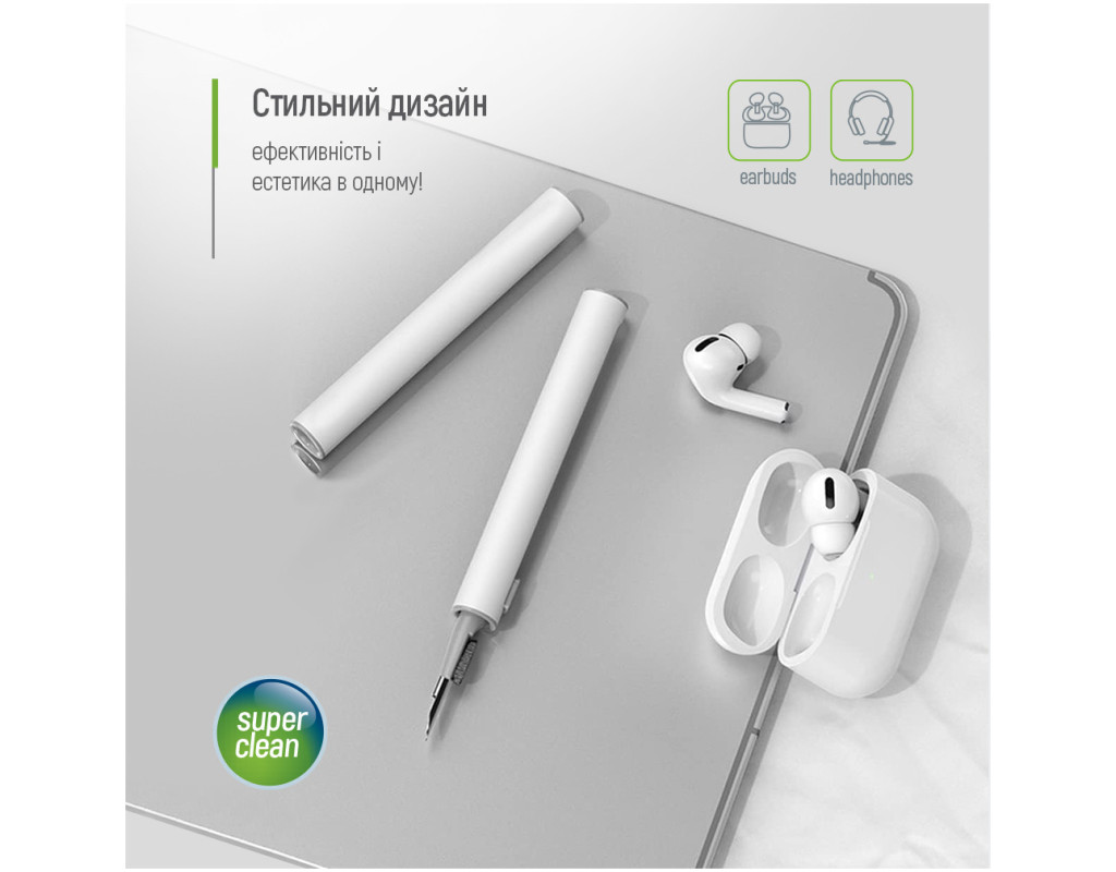 Ручка для чищення навушників ColorWay 3 в 1 - є необхідним аксесуаром для підтримки ваших навушників у первозданному стані. Спеціально розроблений для видалення бруду, пилу та вушної сірки з важкодоступних місць, він забезпечує ретельне очищення, не завдаючи жодних пошкоджень. Ідеально підходить для щоденного використання, цей компактний інструмент легко поміщається у вашу сумку чи рюкзак, дозволяючи чистити навушники будь-коли та будь-де. - Мультифункціональність: 3 в 1 — флокована губка для чищення важкодоступних місць, щітка для очищення дрібних часток та металевий наконечник для важкодоступних місць.