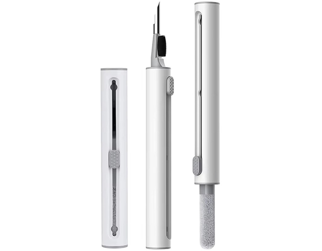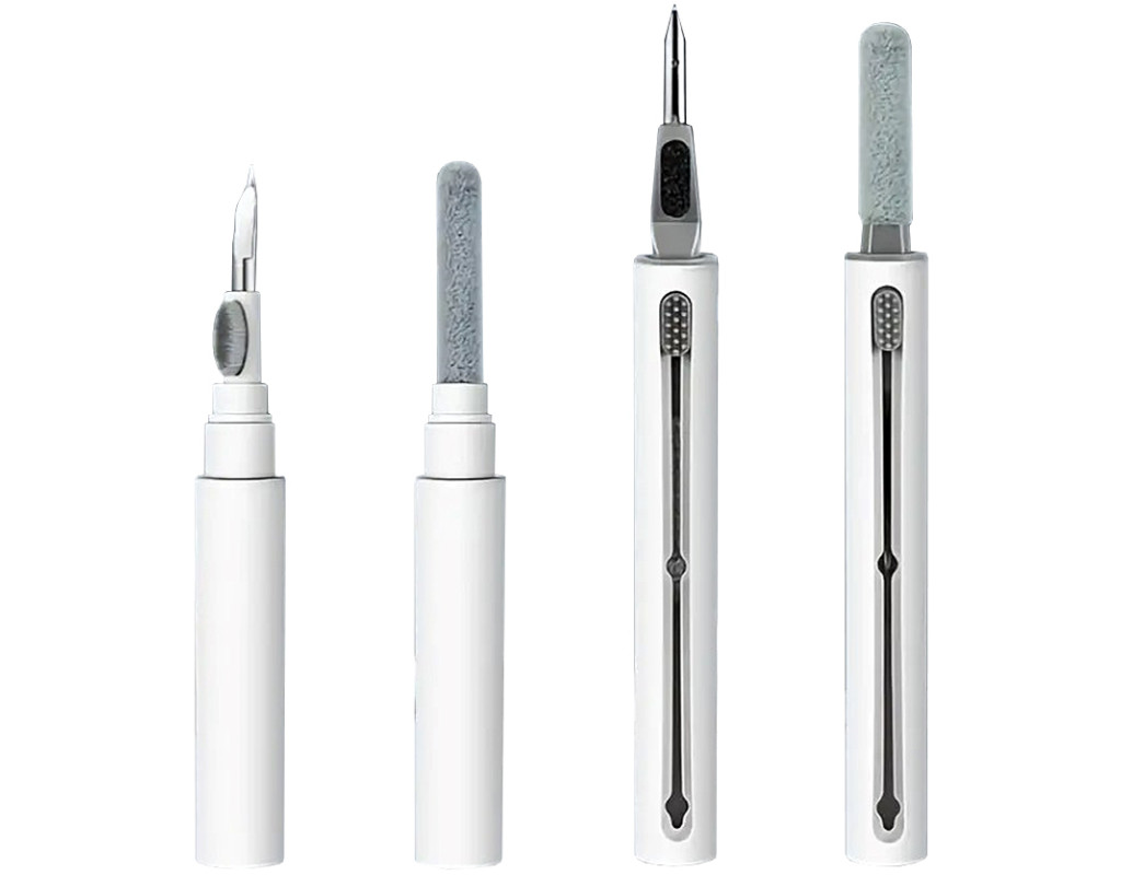 - Дбайливе очищення: Чистка металевим наконечником дозволяє ефективно видаляти стійкі забруднення, а щітка дбайливо очищує сітку динаміків та інші делікатні деталі. (Будьте обережні: злегка натискайте, щоб не пошкодити чутливі частини навушників. Тримайте в недоступному для дітей місці: чистяча ручка містить дрібні деталі та гострі наконечники, які можуть бути небезпечними у разі неправильного використання.)