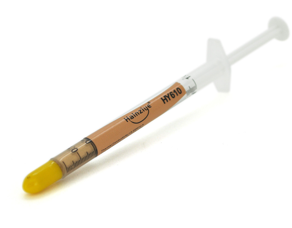 | Однією з основних проблем при роботі процесора, відеочіпів та інших тепловиділяючих компонентів є недопущення їх перегріву. Дуже важливим моментом у відведенні тепла вважається вибір гарного радіатора. Не менш важливим є вибір марки теплопровідна пасти (термопасти), що використовується для перенесення тепла з корпусу компонента на радіатор. Характеристики: марка: HY-610 теплопровідність: > 3,05 W / m-K Діапазон робочих температур: від -30 ℃ до 280 ℃ вага термопасти: 0.5 г; колір: gold упаковка: пластиковий шприц |