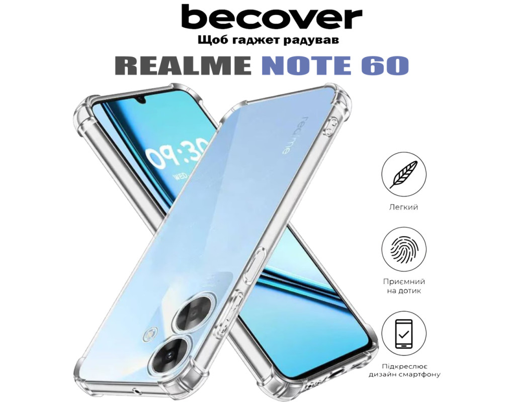 сумісність з моделями - Realme Note 60, Тип чохла для телефону - накладка, Призначення - модельний, Колір - прозорий