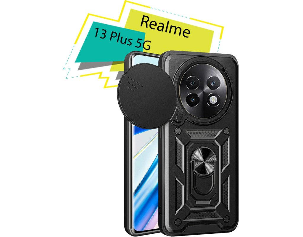 сумісність з моделями - Realme 13 Plus 5G, Тип чохла для телефону - накладка, Призначення - модельний, Колір - чорний