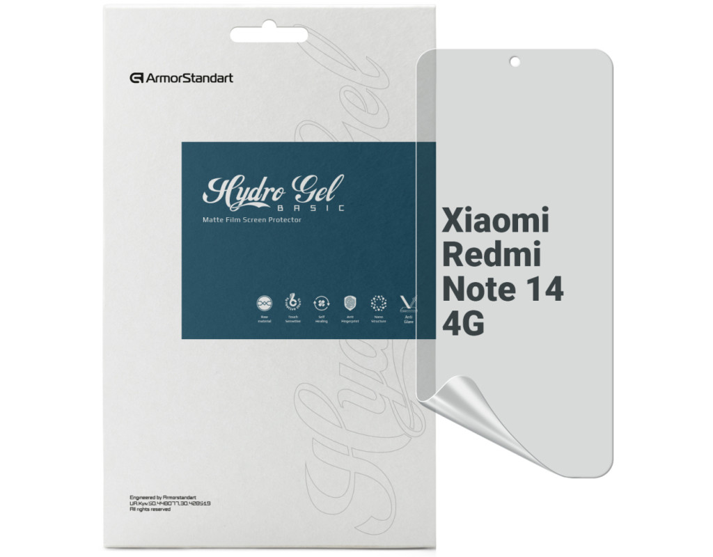 Призначення - для телефону, Вид покриття - матове, гідрогелева, Сумісність з моделями - Xiaomi Redmi Note 14 4G, Кількість в упаковці - 1 шт