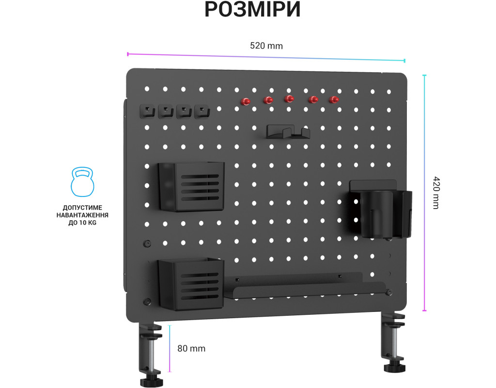 Просте встановлення: інструменти не потрібні Затискна конструкція: міцно кріпиться до столу, забезпечуючи чудову стабільність Панелі можуть з’єднуватися горизонтально або вертикально: адаптується до різних розмірів столу |