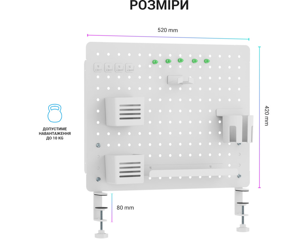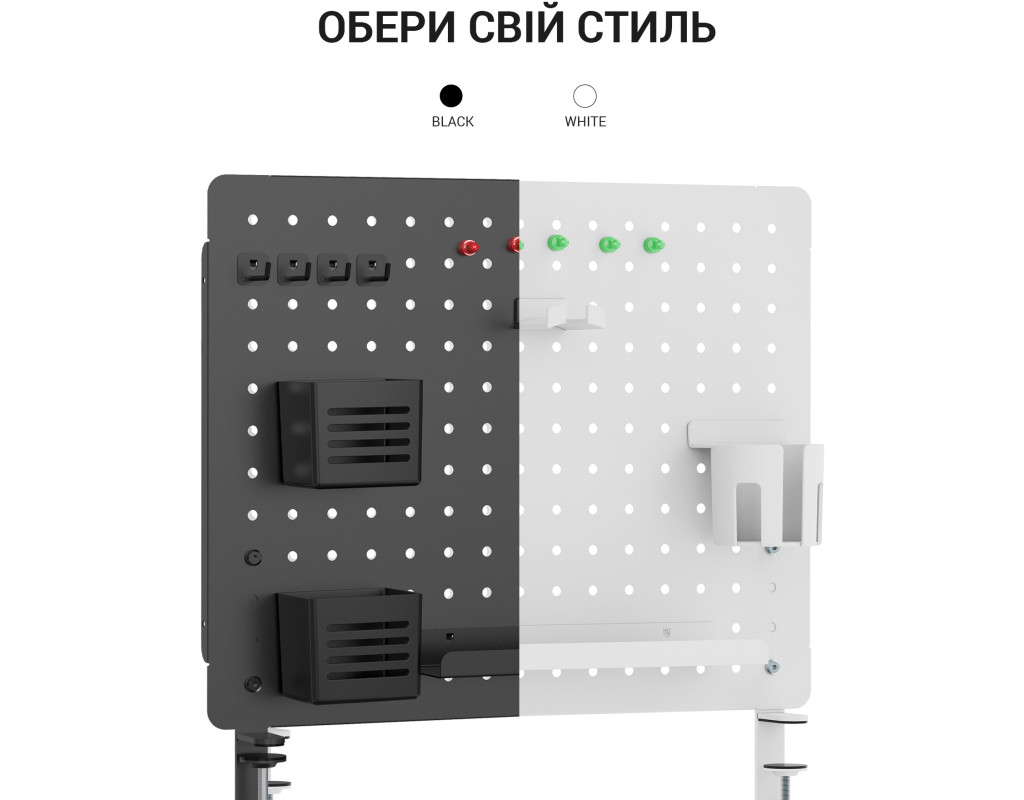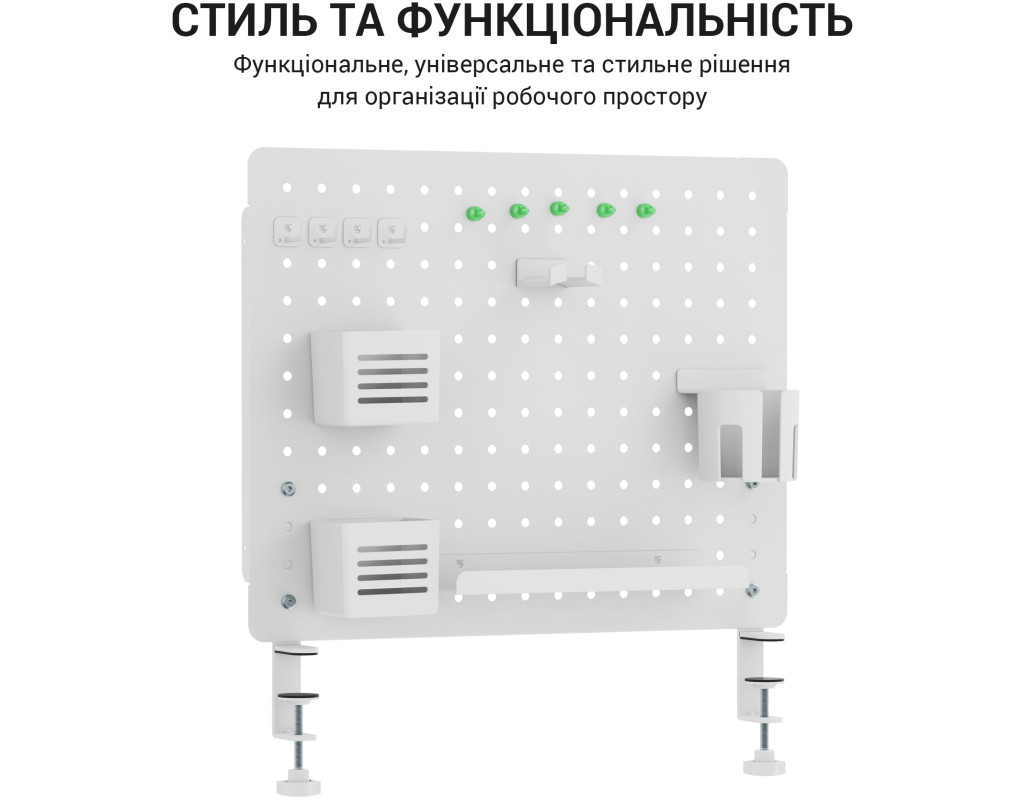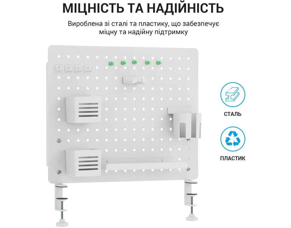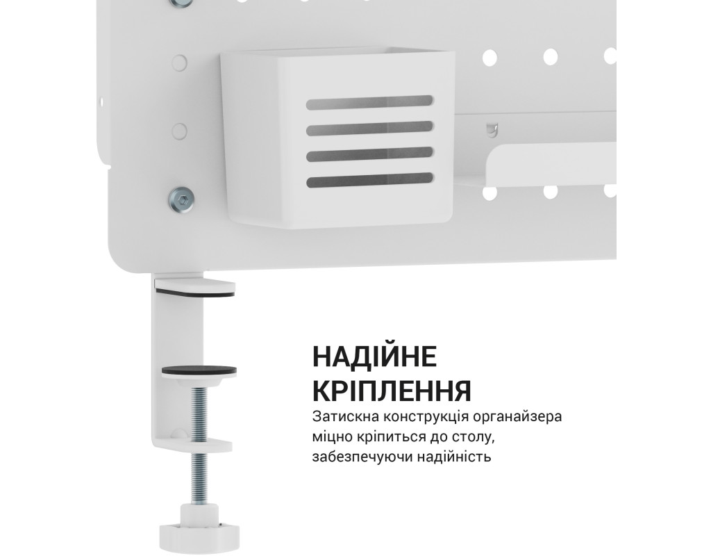 Просте встановлення: інструменти не потрібні Затискна конструкція: міцно кріпиться до столу, забезпечуючи чудову стабільність Панелі можуть з’єднуватися горизонтально або вертикально: адаптується до різних розмірів столу |