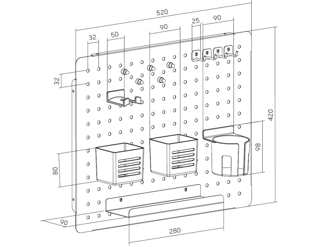Від канцелярського приладдя та прикрас, до цифрової периферії та книг - цей органайзер у сучасному стилі є ідеальним рішенням для зберігання чи демонстрації. Широка можливість довільного розміщення комплектних тримачів дозволяє персоналізувати їх на свій смак. А міцна сталева конструкція та порошкове покриття поверхні забезпечують надійність та довговічність. |