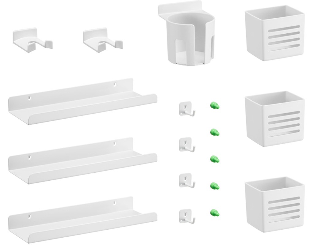 Завдяки універсальному типу кріплення аксесуарів, їх можна встановлювати різними способами для різних потреб, тим самим персоналізувавши їх розміщення на свій смак. Створіть унікальну комбінацію з дошки та багатофункціональних аксесуарів для зберігання, які відповідають вашим цілям, незалежно від того буде це робоче місце для геймінгу чи офісної роботи. Це функціональний вибір для досягнення повного використання робочого простору і зберігання канцелярського приладдя, іграшок, наклейок, електроніки, невеликих кімнатних рослин тощо. |