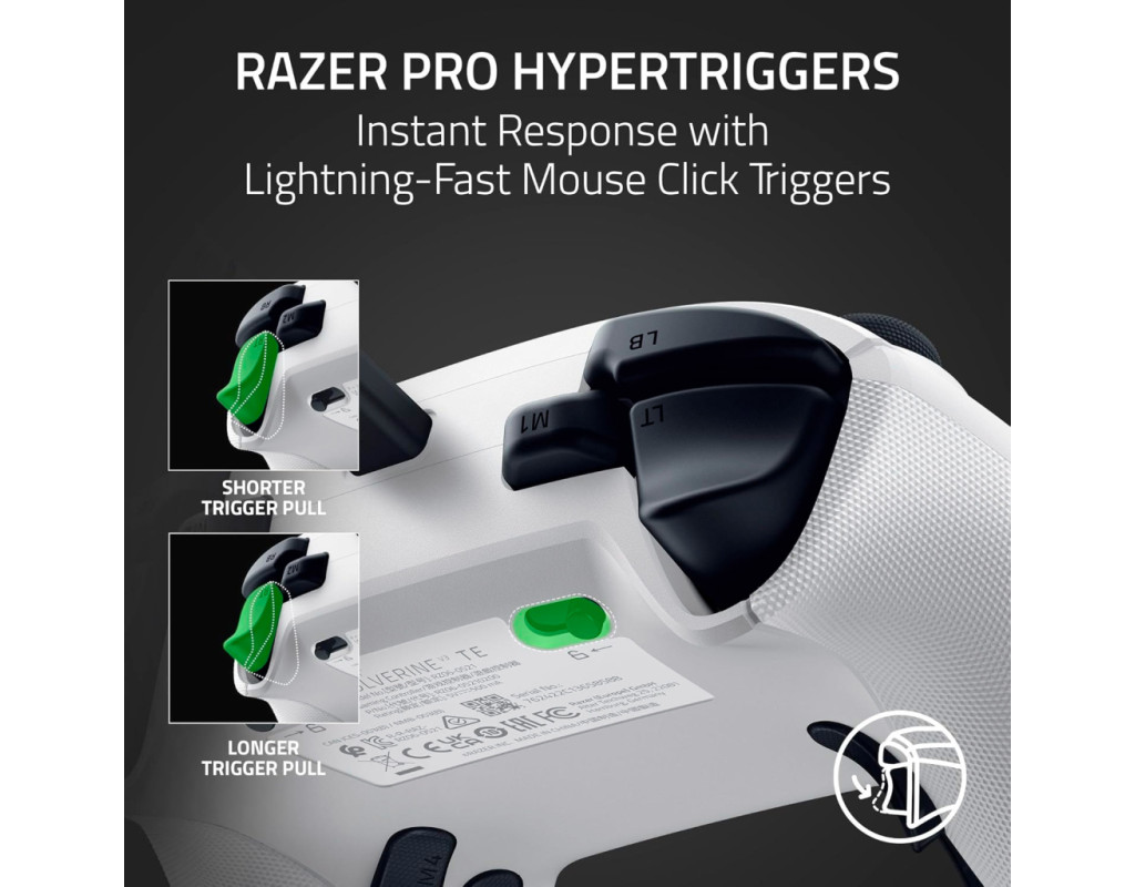 Для професіоналів Отримайте перевагу, яка потрібна для домінування над суперниками, з Razer Wolverine V3 Tournament Edition - наш найсучасніший дротовий кіберспортивний геймпад. Геймпад, офіційно ліцензований Xbox, дає змогу професійно грати на Xbox і ПК, забезпечуючи швидкість, контроль і точність, які приведуть вас до справжньої ігрової слави. 4 пелюстки з клацанням, як на миші, і 2 бампери для кігтьового хвата 6 перепризначуваних кнопок, щоб переграти всіх. Насолоджуйтеся такою ж надчутливою реакцією, як і в наших найкращих ігрових мишах, завдяки чотирьом пелюсткам, вбудованим в ергономічні прогумовані рукоятки геймпада та доповненим двома бамперами для кігтьового хвата, що забезпечують ще більший контроль. Razer Pro HyperTrigger Миттєва реакція завдяки блискавичним тригерам, як на миші. Налаштуйте тригери на миттєве спрацювання без затримок або для точного аналогового керування. Повністю пориньте у гру та відчуйте кожне натискання на тригер завдяки вбудованій тактильній вібрації. Високоточні стіки під великі пальці з датчиками Холла Точність без зсувів із налаштовуваною чутливістю. Аналогові стіки під великі пальці не тільки точніші за традиційні моделі, але й плавніші, легші й довговічніші завдяки антифрикційним кільцям і високоякісним матеріалам. Механіко-тактильні кнопки дій та 8-позиційна хрестовина Razer Надшвидкі спрацювання з тактильним відгуком. Поєднання швидкості мікроперемикачів з комфортом пружної гумової мембрани дозволяє змагатися з найшвидшим введенням, забезпечуючи при цьому таке ж зручне натискання. Кастомізація професійного рівня для Xbox і ПК За допомогою програми Razer Controller. Налаштовуйте чутливість стіків для великих пальців та створюйте індивідуальне розташування кнопок за допомогою нашого спеціального додатку. Збережіть персональний профіль і будьте готові до будь-яких змагань. Режим турніру для ПК Частота опитування 1000 Гц для змагальної гри на ПК. При дротовому підключенні на ПК можна ввімкнути спеціальний турнірний режим з частотою опитування 1000 Гц за допомогою застосунку Razer Controller або комбінації клавіш геймпада. 3-метровий кабель USB Type-C, що від'єднується Зручне рішення для турнірів. Будьте готові грати на Xbox або ПК за допомогою портативної конструкції, виготовленої за технологією plug-and-play. Просто під'єднайте і насолоджуйтеся дротовим під'єднанням із нульовою затримкою, вкрай важливою для змагальної гри. |