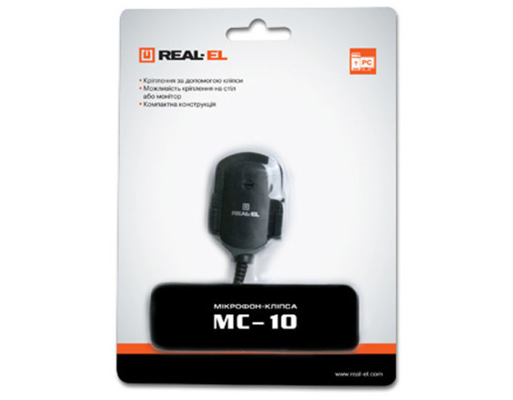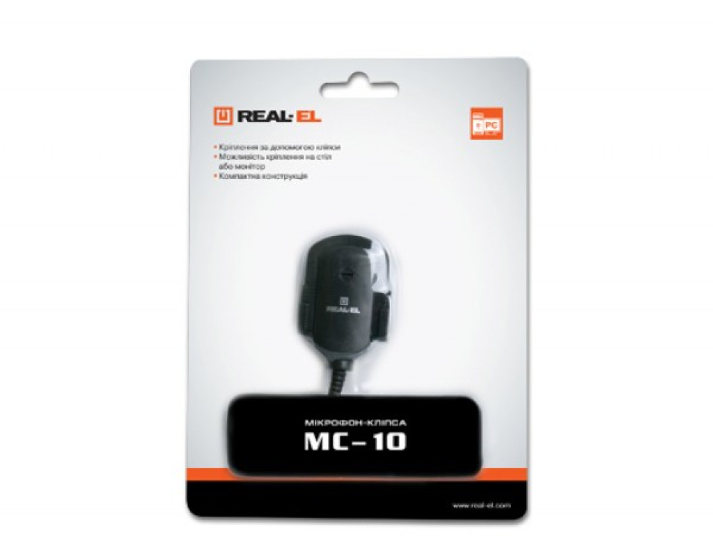 Мікрофон REAL-EL MC-10 - це зручний та надійний мікрофон-кліпса, який призначений для спілкування через Інтернет, запису слів i фраз під час вивчення іноземних мов. Мікрофон має кліпсу для кріплення на одязі, а також знімне кріплення, призначене для фіксації моделі на столі або на корпусі монітора. |