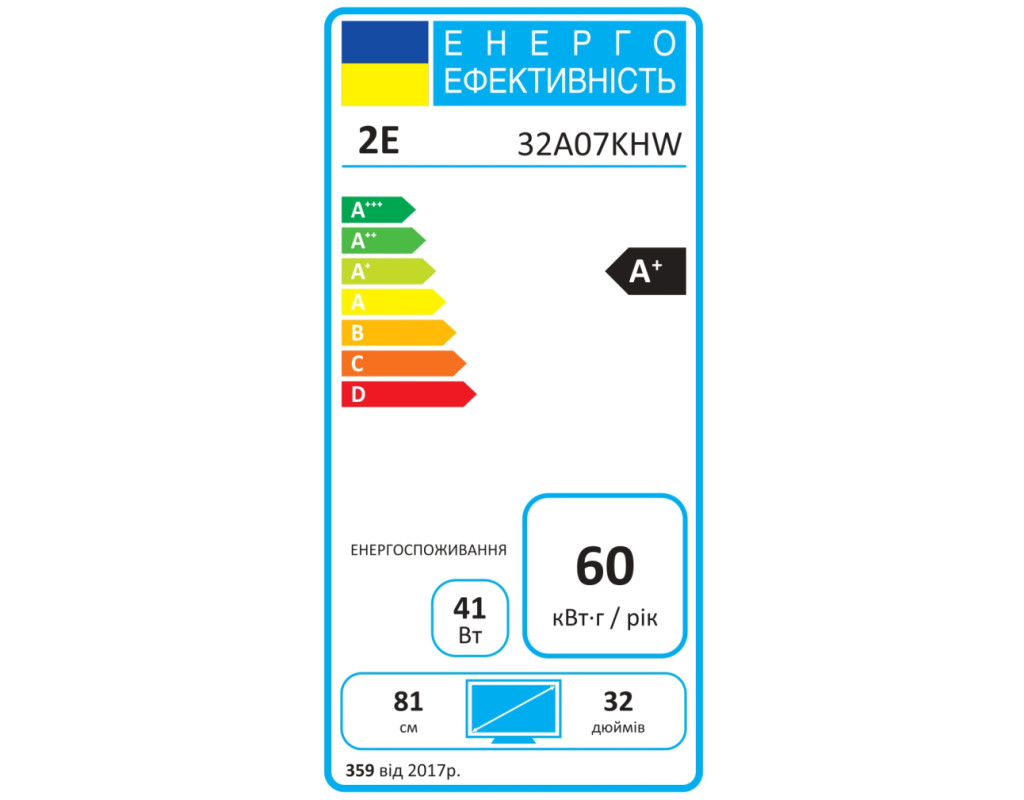 Широкий вибір каналів і підтримання різноманітних форматів Телевізор 2E має два тюнери й підтримує різні стандарти, включно з DVBT2 MPEG2 та DVB-T2 MPEG4 , забезпечуючи можливість переглядати до 900 каналів (100 аналогових і 800 цифрових). Вбудований NICAM-декодер гарантує якісний стереозвук, а телетекст 1 000 сторінок надає доступ до додаткової інформації. Телевізор підтримує широкий спектр форматів файлів: DivX, XviD, JPEG, MP3, AVI, WMA, H.264, H.265, тож можна переглядати фото, слухати музику чи дивитися відео прямо з флешки. Зручність у кожній деталі Модель 2E-32A07KH продумано до дрібниць. Компактний розмір і легка вага (3,6 кг без паковання), стильний дизайн і можливість настінного монтажу за стандартом VESA 200 × 100 зумовлює можливість встановити телевізор у будь-якому приміщенні. Кут огляду 178°/178° забезпечує якісний перегляд під будь-яким кутом, тому відтворення контенту буде однаково чітким і контрастним незалежно від того, де розташувався глядач. Комплектовання та енергоефективність Разом із телевізором у комплекті є: пульт дистанційного керування, батарейки до нього, підставка для комфортного встановлення, посібник користувача, гарантійний талон, мікроафіша та етикетка енергоефективності. Споживання енергії телевізором становить 41 Вт, що забезпечує енергоефективну роботу пристрою. |