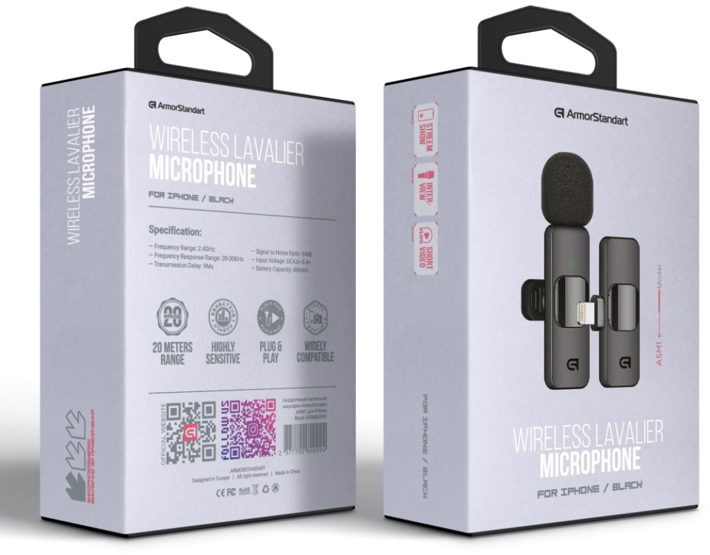 Бездротовий петличний мікрофон ArmorStandart ASM1 для iPhone Black — це зручне рішення для запису чистого та якісного звуку без зайвих дротів. Ідеально підходить для блогерів, журналістів, викладачів і стрімерів, які хочуть отримати професійний звук для своїх відео, інтерв’ю чи онлайн-трансляцій. Завдяки бездротовому з'єднанню на частоті 2.4 ГГц мікрофон забезпечує стабільну передачу звуку без перешкод та втрати якості. Частотний діапазон 20 Гц – 30 кГц гарантує природне відтворення голосу. Мікрофон має низьку затримку передачі (лише 9 мс), що робить його ідеальним для відеозйомки та онлайн-спілкування. Радіус дії в умовах без перешкод становить 15–20 метрів, що дозволяє вільно пересуватися під час запису. Конструкція передбачає надійну фіксацію на одязі, а також захист від вітру, що робить його ефективним для використання як у приміщенні, так і на вулиці. Мікрофон не потребує встановлення додаткового програмного забезпечення — достатньо підключити приймач через роз'єм Lightning, і пристрій готовий до роботи. ArmorStandart ASM1 передавач оснащений вбудованим акумулятором, який забезпечує до 3 годин автономної роботи. Час заряджання пристрою займає мінімум часу. |