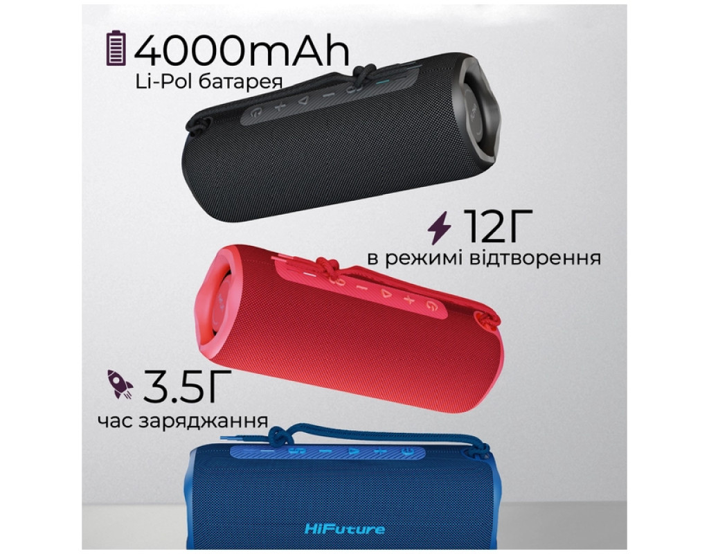 | Акустична система HiFuture Alpha Red (alpha.red) - це втілення інноваційних технологій у стильному, компактному форм-факторі. Поєднуючи в собі високоякісні динаміки потужністю 20 Вт з двома каналами та двома полосами, ця портативна колонка забезпечує неперевершену чистоту звучання та гучність, що перевершує очікування. Основною перевагою HiFuture Alpha Red є підтримка технології Bluetooth 5.3, яка гарантує стабільне бездротове підключення та низьке енергоспоживання. Завдяки цій сучасній технології, підключити колонку до смартфона чи іншого пристрою – це справа секунд, а споживання заряду зменшується, що дозволяє насолоджуватися музикою довше. Li-Pol батарея ємністю 4000 mAh забезпечує до 12 годин безперервного відтворення, тож ви можете забути про постійне підзаряджання. Заряджається пристрій через USB-C роз'єм, що стало стандартом для швидкої і ефективної зарядки. Крім того, з TWS (True Wireless Stereo) у вас є можливість створити об'ємний стерео-звук, об’єднавши дві колонки для ще більшого ефекту. Ця колонка ідеально підходить для активного стилю життя завдяки своєму вологозахисту IPX7, що робить її відмінним вибором для подорожей, прогулянок на природі або відпочинку біля води. Корпус, виготовлений з комбінації матового ABS-пластику, гуми і тканини, не тільки захищає внутрішні компоненти, але й робить колонку надзвичайно стильною та привабливою. Управління інтуїтивно зрозуміле з допомогою п'яти кнопок на корпусі, що дозволяють не лише регулювати гучність, але й перемикатися між двома режимами EQ: обираючи між збалансованим звуком або підкресленими басами. Стильний дизайн доповнює функціональна петля з міцного шнура, що дозволяє зручно переносити колонку або закріпити її на зап'ясті чи в іншому зручному місці. Незважаючи на свої численні можливості, HiFuture Alpha Red важить лише 0.47 кг, що робить її легкою і зручною для переміщення. Цей пристрій стане ідеальним доповненням як для домашнього використання, так і для днів, проведених на свіжому повітрі. Завдяки своїй бризкозахищеності, міцному корпусу та тривалій автономності, HiFuture Alpha Red – це вибір тих, хто цінує якісний звук, комфорт і стильний вигляд у кожній деталі. |