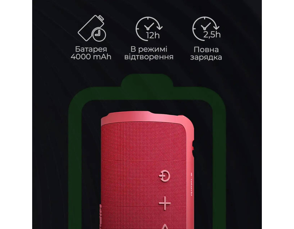 | Акустична система HiFuture Ripple Blue (ripple.blue.) - це втілення сучасних технологій і неперевершеного стилю в компактному форматі. Створена для тих, хто цінує якісний звук у поєднанні з естетичним дизайном, ця портативна колонка відмінно поєднує потужність та мобільність, надаючи можливість насолоджуватися улюбленою музикою де завгодно. Оснащена Bluetooth 5.3, Ripple Blue забезпечує стабільну бездротову передачу даних та оптимізоване енергоспоживання, дозволяючи безперебійно слухати музику годинами. Завдяки двоканальній системі, що складається із сабвуфера на 20 Вт та твіттера на 10 Вт, ця колонка забезпечує об'ємний і якісний звук. 30 Вт потужності гарантують глибокі насичені баси та чисті високі частоти, трансформуючи будь-який простір у місце для вашого особистого музичного фестивалю. HiFuture Ripple Blue підтримує автономну роботу до 12 годин завдяки Li-Pol батареї ємністю 4000 мАг. Це робить її ідеальним супутником для подорожей або активного відпочинку. Повний заряд триватиме лише 2.5 години за допомогою кабеля USB-C, що дозволяє швидко повернутися до прослуховування улюблених треків. Завдяки вологозахищеності за стандартом IPX7, ви можете не турбуватися про дощ або випадкові потрапляння рідини. Колонка здатна витримати воду, пісок та навіть морські бризки, що робить її ідеальною для пляжних вечірок чи кемпінгу. Конструкція Ripple Blue продумана до дрібниць: корпус із ударостійкого пластику декорований тканиною, що не тільки додає естетичної привабливості, але й забезпечує додатковий захист. Її вага всього 0.55 кг, а зручна петля зі шнура дозволяє легко транспортувати колонку, закріплюючи на рюкзаку чи носити на зап'ясті. Два режими EQ дають змогу обирати між збалансованим звучанням та потужними басами, підлаштовуючи музику під ваш настрій. А технологія TWS (True Wireless Stereo) дозволяє підключити дві колонки для досягнення справжнього стерео звучання. Кожен елемент HiFuture Ripple Blue створений для вашого комфорту і задоволення. Встановіть колонку на полиці або візьміть її з собою у подорожі — з Riplple Blue ви завжди будете в самому епіцентрі музичних подій. Завдяки сумісності з будь-якими сучасними пристроями Bluetooth, ви зможете підключитися до неї без зайвих зусиль. HiFuture Ripple Blue — це ваш особистий аксесуар, що поєднує технологію, стиль та якість, роблячи кожен момент вашого життя особливим. |