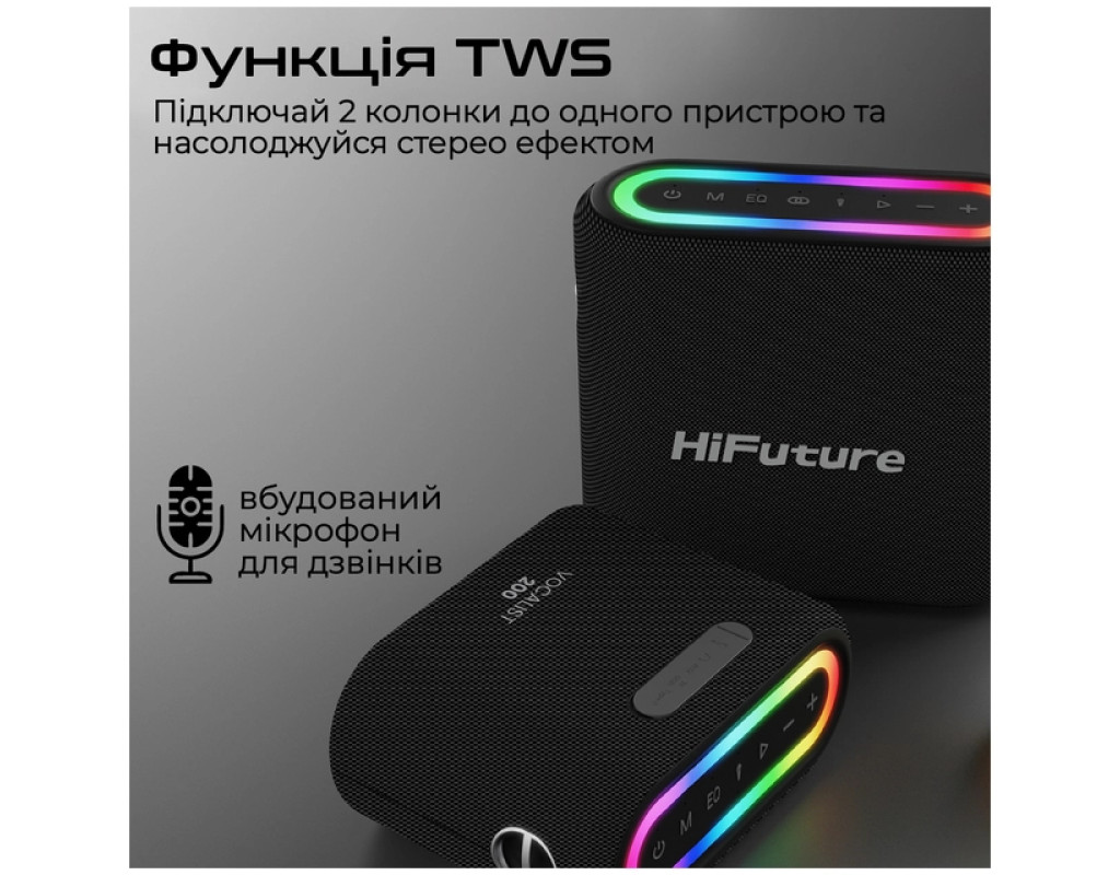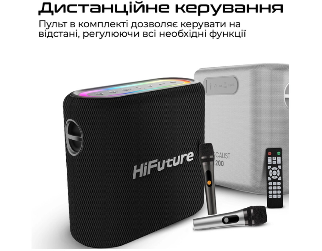 | Акустична система HiFuture Vocalist 200 Black є справжнім технологічним шедевром, що об'єднує у собі потужність, елегантність та передові можливості для створення бездоганного звукового оточення. Ця портативна колонка - вибір для тих, хто прагне чогось більшого від своєї музики. Завдяки потужності 100 Вт, система забезпечує не лише чіткість звуку, але й достатню гучність для проведення вечірок будь-якого масштабу. Оснащена новітнім Bluetooth 5.0, Vocalist 200 забезпечує з'єднання без затримок, що дозволяє насолоджуватися улюбленими мелодіями без жодних переривань. Для вашої зручності передбачено різноманітність інтерфейсів: TF-карта пам'яті, USB-C, AUX та USB, які дозволяють легко підключати всі потрібні джерела звуку. Це ідеальний вибір для тих, хто цінує якість та багатофункціональність. Особливістю HiFuture Vocalist 200 є підтримка караоке. Два мікрофони, що йдуть у комплекті, доповнені функціоналом покращення звучання голосу, додають атмосферу професійності кожному вашому співу. LED підсвічування з кількома режимами світіння дозволяє створити атмосферу як для великої вечірки, так і для тихого сімейного вечора. Меню підсвічування можна легко налаштувати за допомогою бездротового пульта дистанційного керування. Корпус системи виконаний з високоміцного пластику, що гарантує її довговічність при активному використанні. Легка вага і компактність дозволяють без проблем розміщувати її на будь-якій полиці. Літій-полімерна батарея на 12000 mAh забезпечує до 10 годин безперервного звучання на максимальній гучності, що дозволяє вам залишатися у світі музики, не турбуючись про зарядку. Додаткову зручність забезпечує функція повербанка, яка стане в нагоді в самих непередбачуваних ситуаціях. HiFuture Vocalist 200 Black - це не просто колонка, це справжня аудіо-студія в компактному форматі. Завдяки функції True Wireless Stereo (TWS), можна з'єднати два пристрої в одну систему, створюючи широке стерео звучання. У комплект входить ремінь для зручного транспортування і зберігання мікрофонів, що робить цю систему ідеальною для активних людей. Пориньте у світ виняткового звуку з цією багатофункціональною системою, що об'єднує у собі стиль, якість та інновації. |